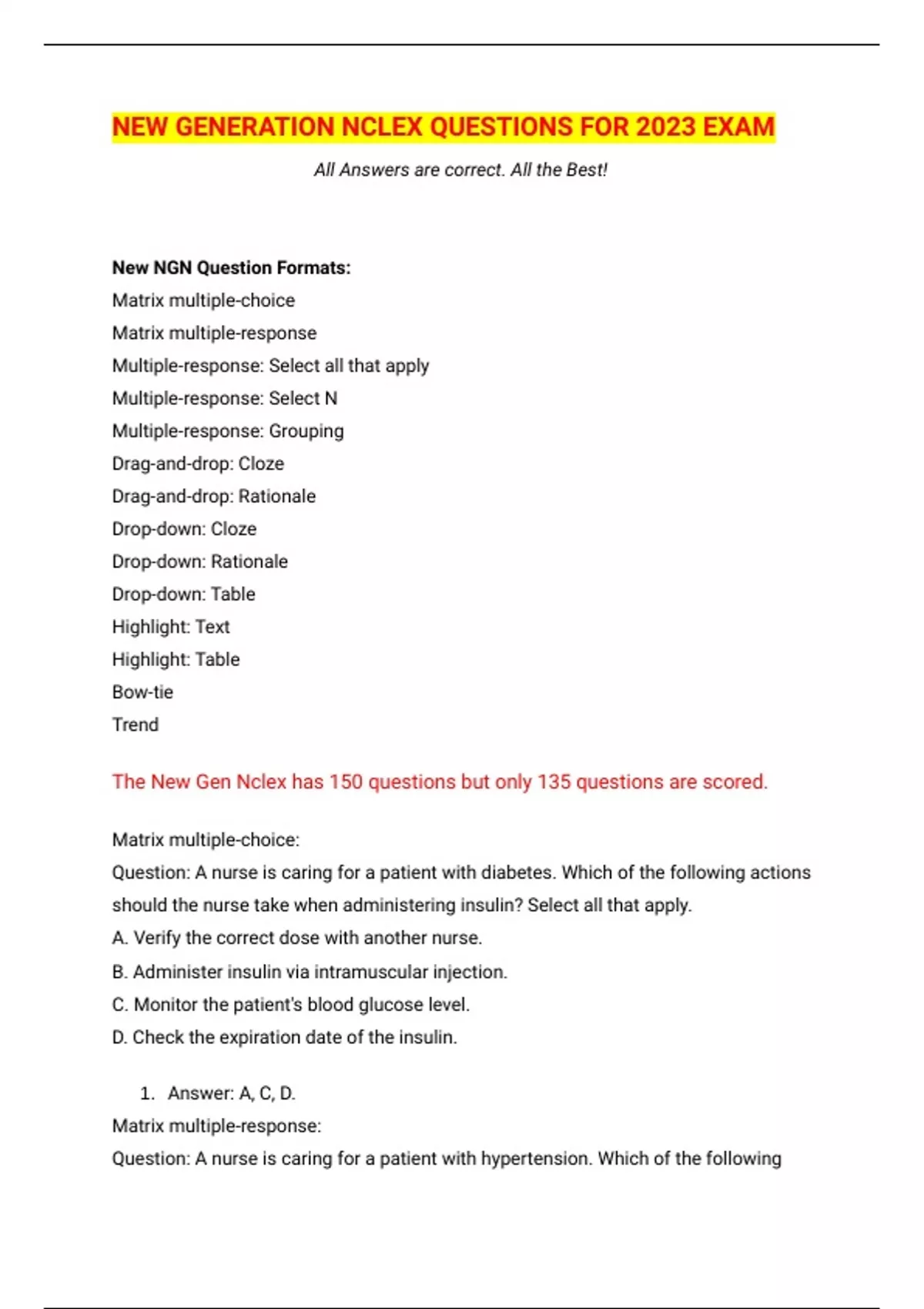 NEW GENERATION NCLEX QUESTIONS FOR 2023 EXAM NEW GENERATION NCLEX QUESTIONS FOR 2023 EXAM NEW GENERATION NCLEX QUESTIONS FOR 2023 EXAM