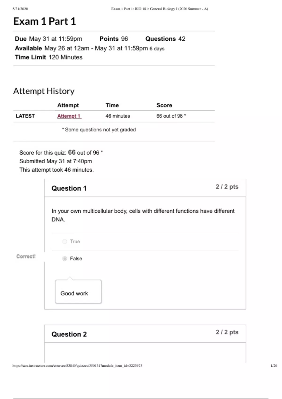 BIO 181 EXAM 1 COMPLETED 2022 (GRADED)