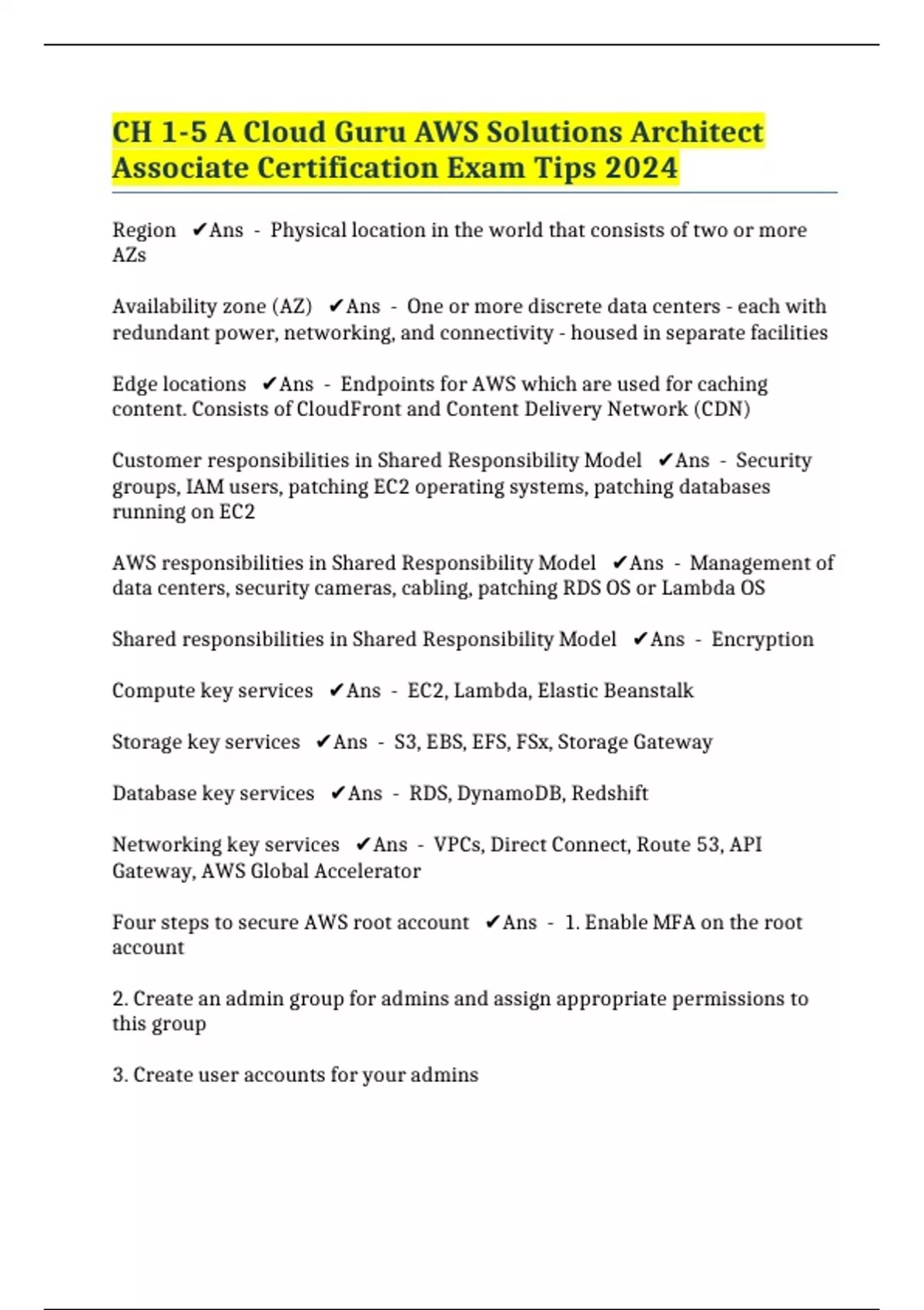 CH 1-5 A Cloud Guru AWS Solutions Architect Associate Certification Exam Tips 2024
