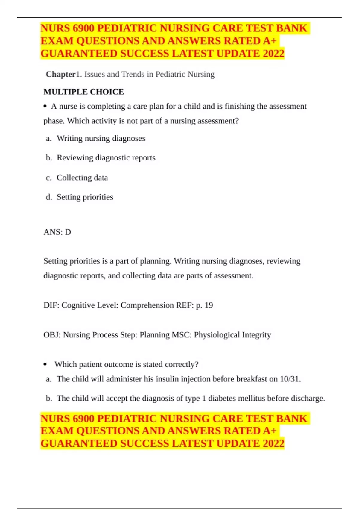 NURS 6900 PEDIATRIC NURSING CARE TEST BANKEXAM QUESTIONS AND ANSWERS RATED