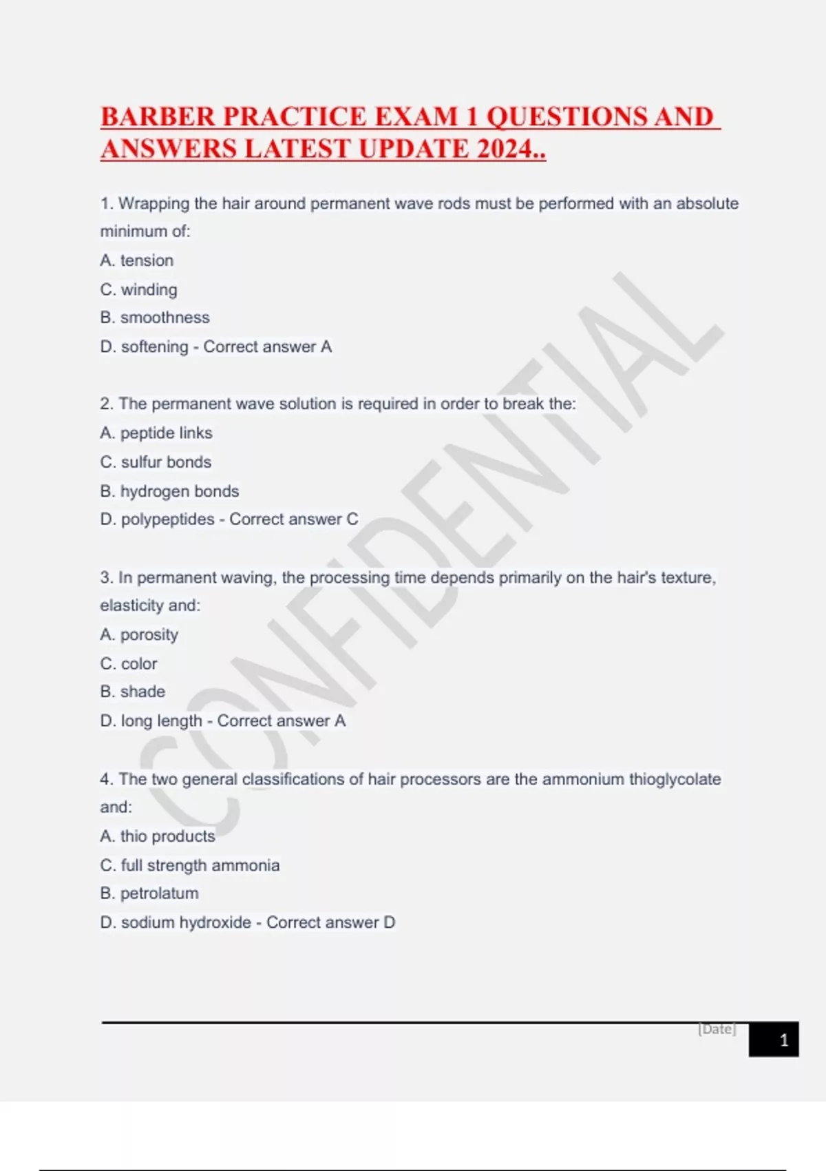 BARBER PRACTICE EXAM 1 QUESTIONS AND ANSWERS LATEST UPDATE 2024..