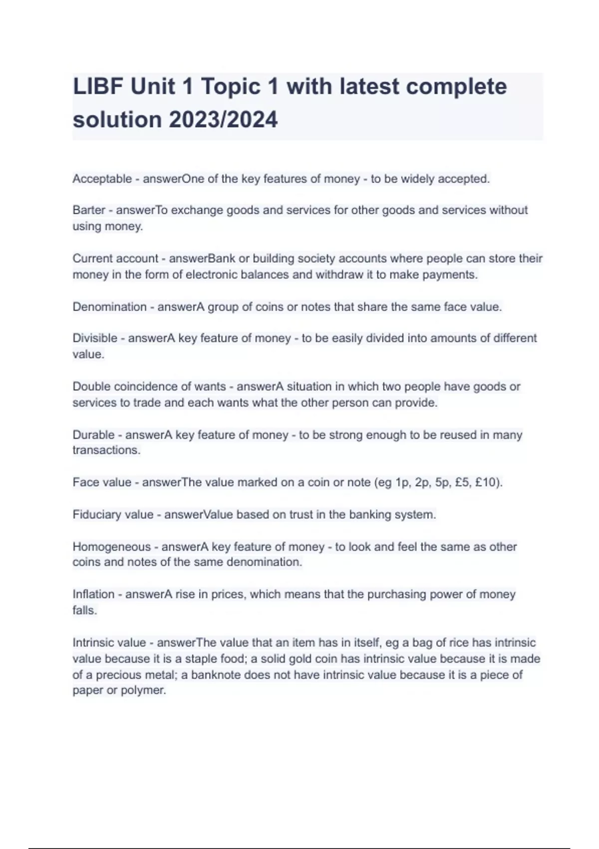 LIBF Unit 1 Topic 1 with latest complete solution 2023/2024