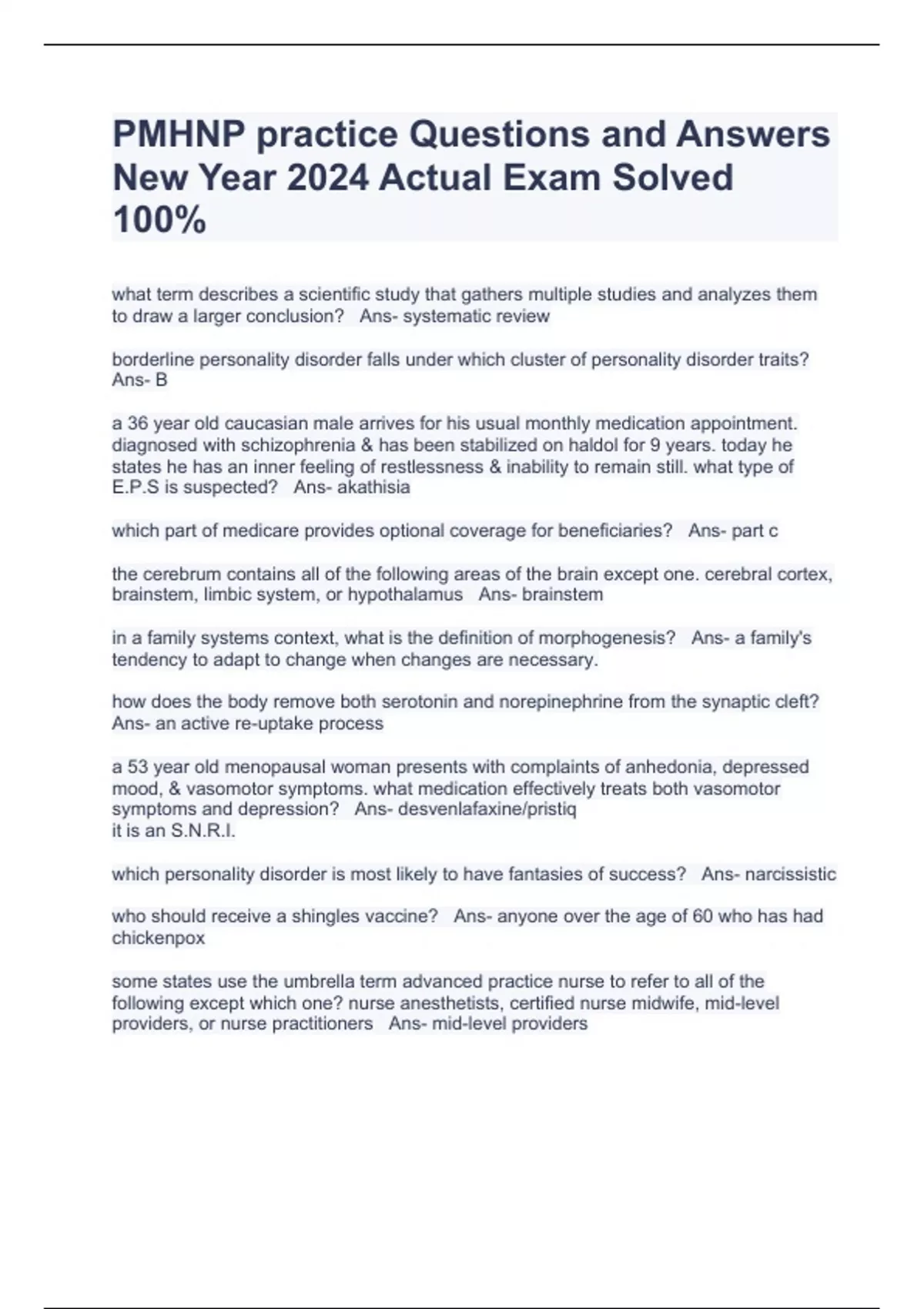 PMHNP practice Questions and Answers New Year 2024 Actual Exam Solved 100%