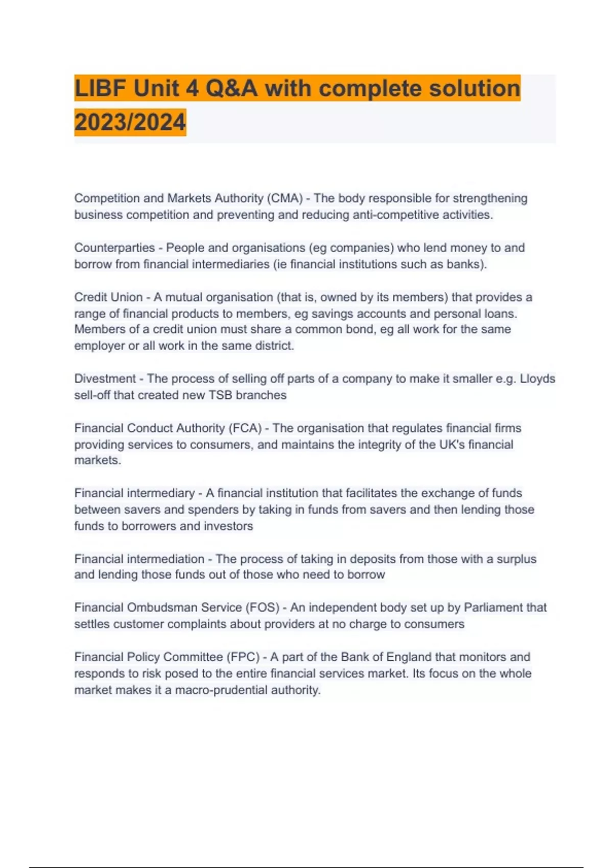 - LIBF Unit 4 Q&A with complete solution 2023/2024