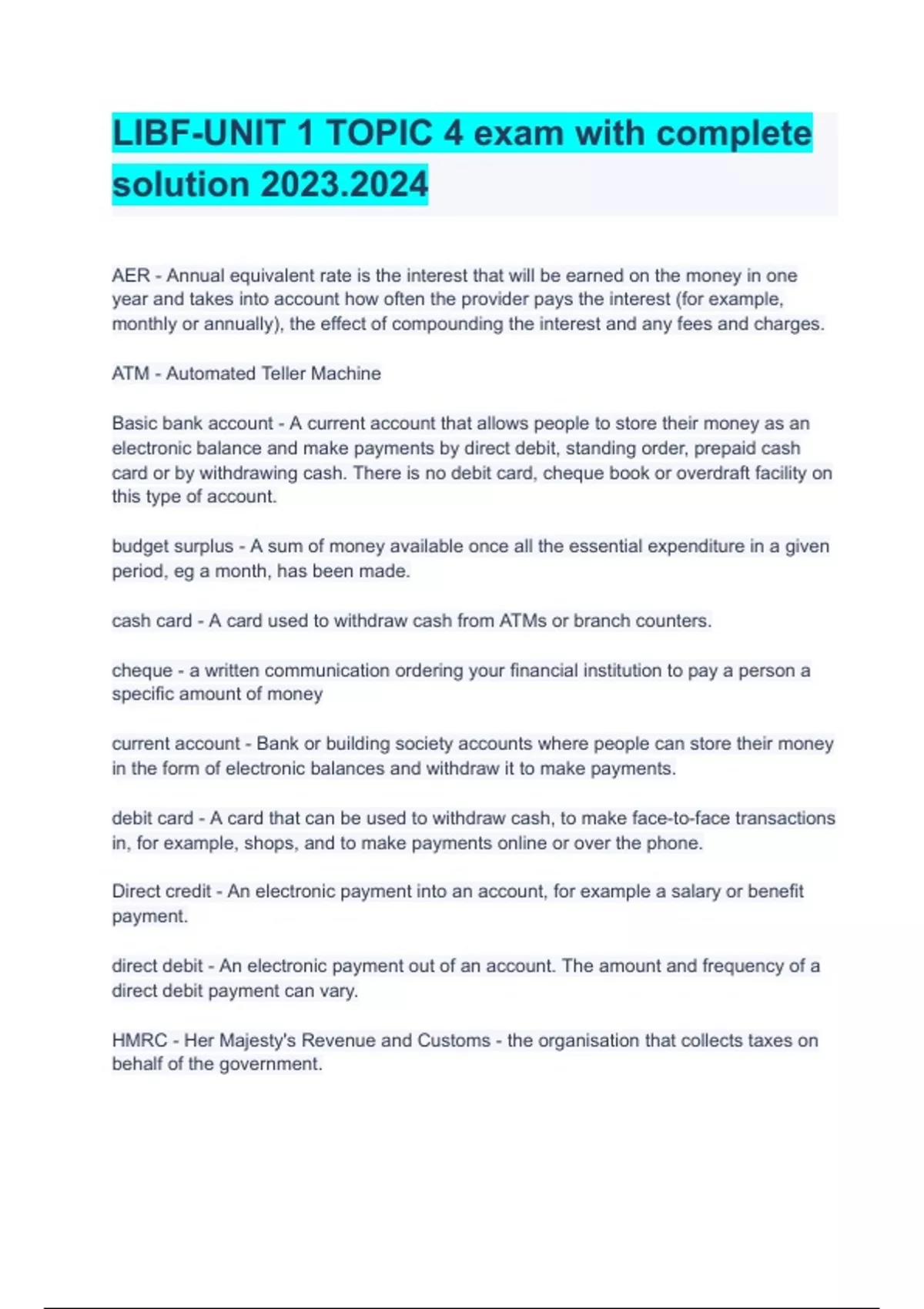 LIBF-UNIT 1 TOPIC 4 exam with complete solution 2023.2024