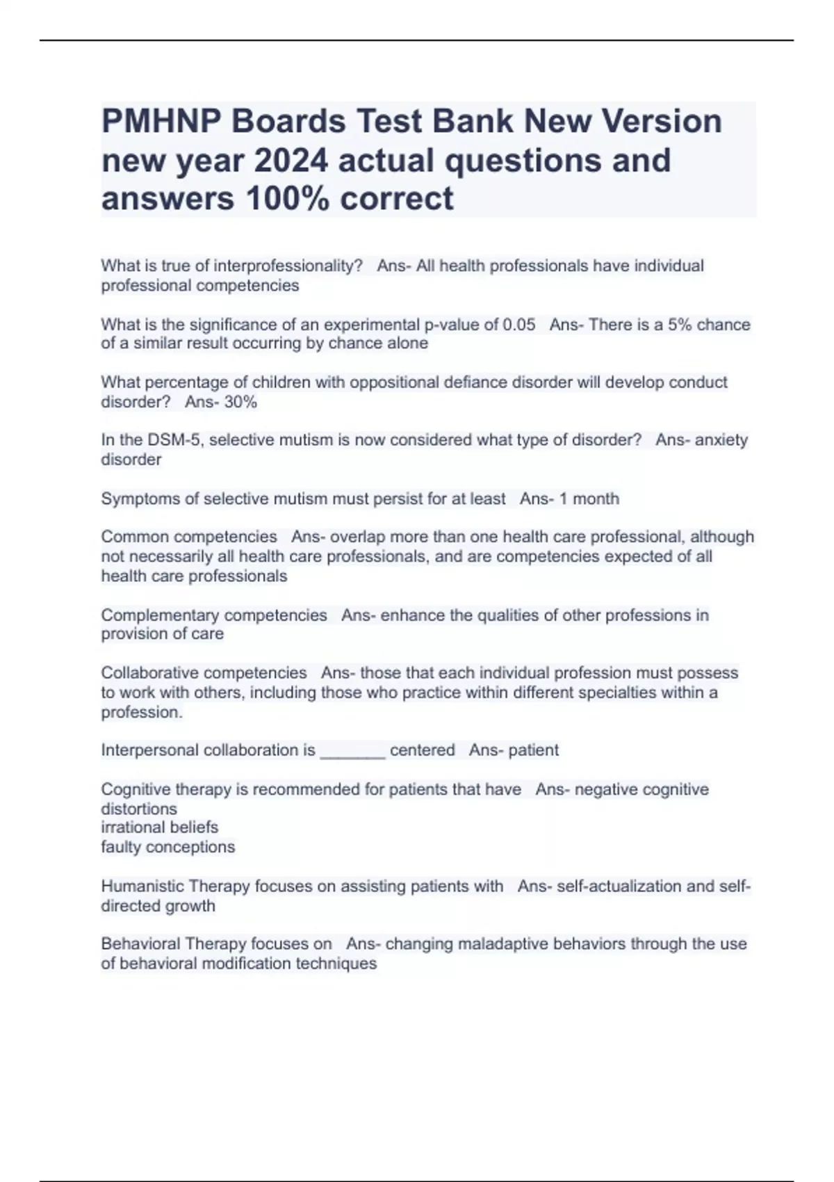 PMHNP Boards Test Bank New Version new year 2024 actual questions and answers 100% correct