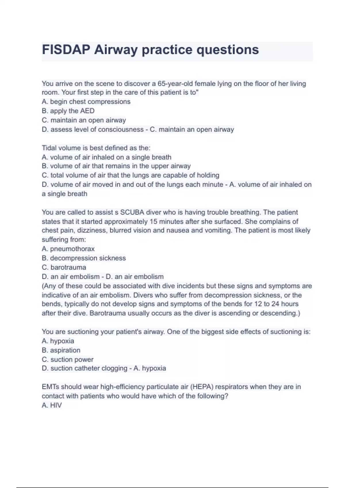 - FISDAP Airway practice questins