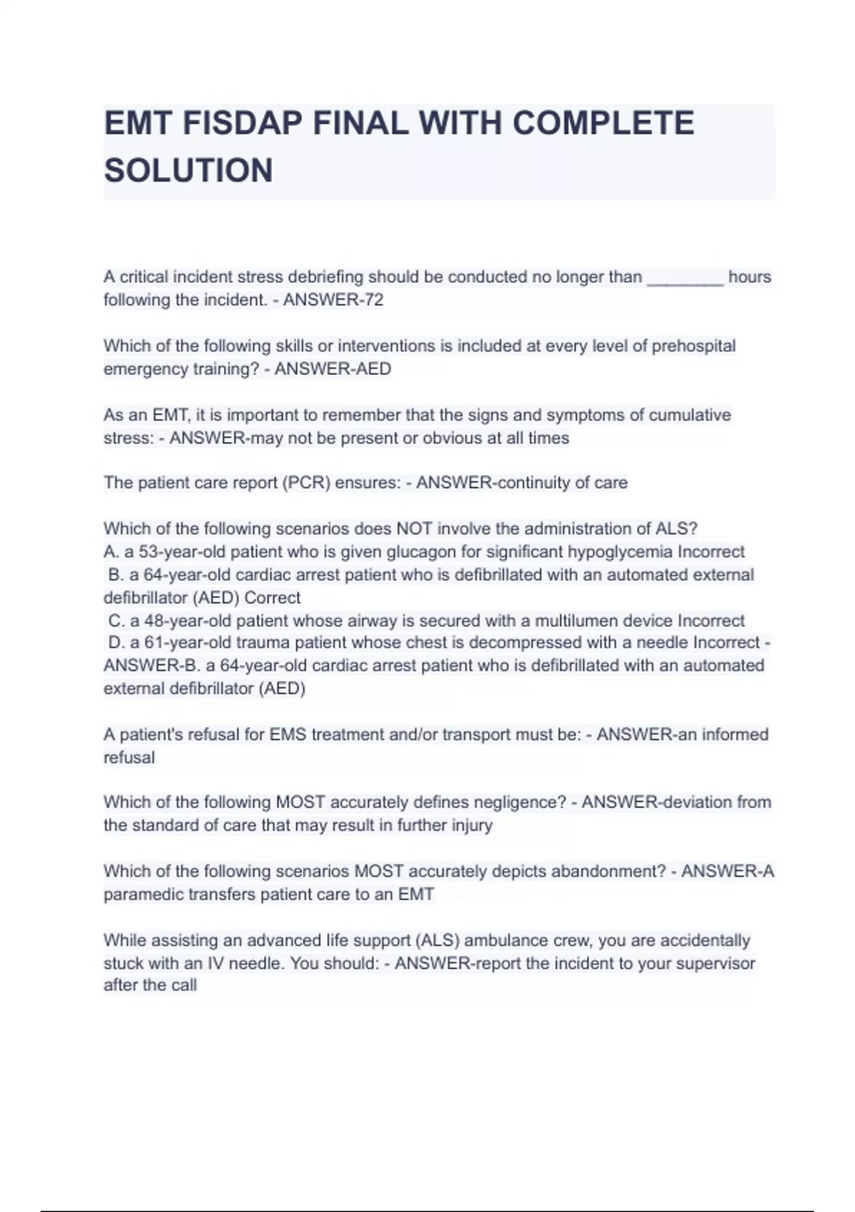 - EMT FISDAP FINL WITH COMPLETE SOLUTION
