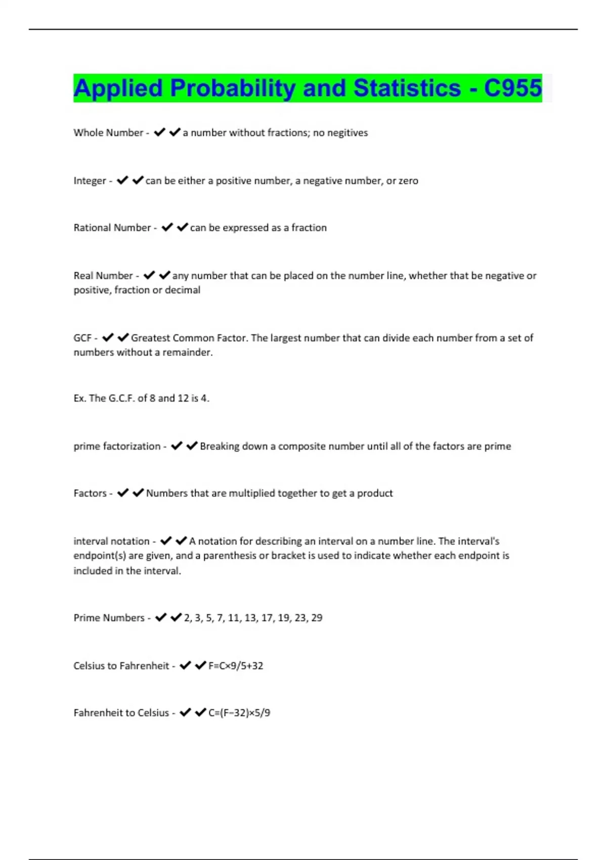 - Applied Probability and Statistics - C955