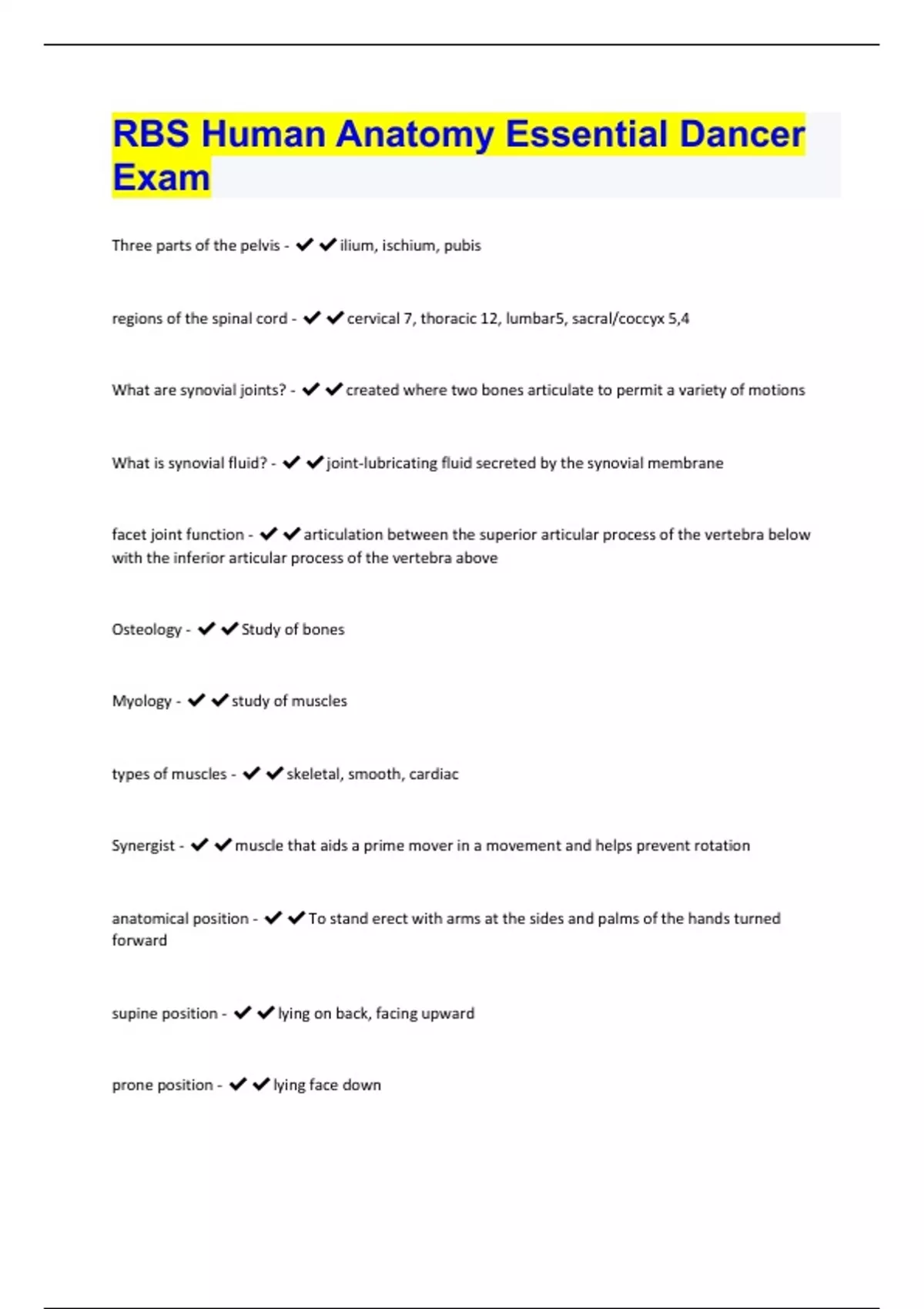 2024 ,RBS Human Anatomy Essential Dancer Exam Questions With 100% Correct Answers.