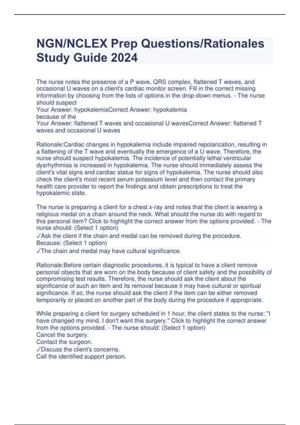 NGN/NCLEX Prep Questions/Rationales Study Guide 2024