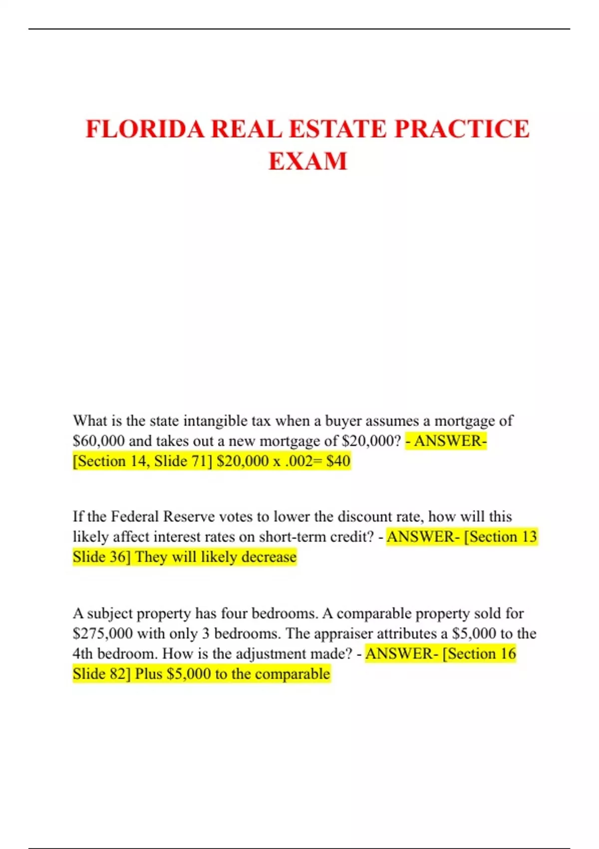 FLORIDA REAL ESTATE PRACTICE EXAM