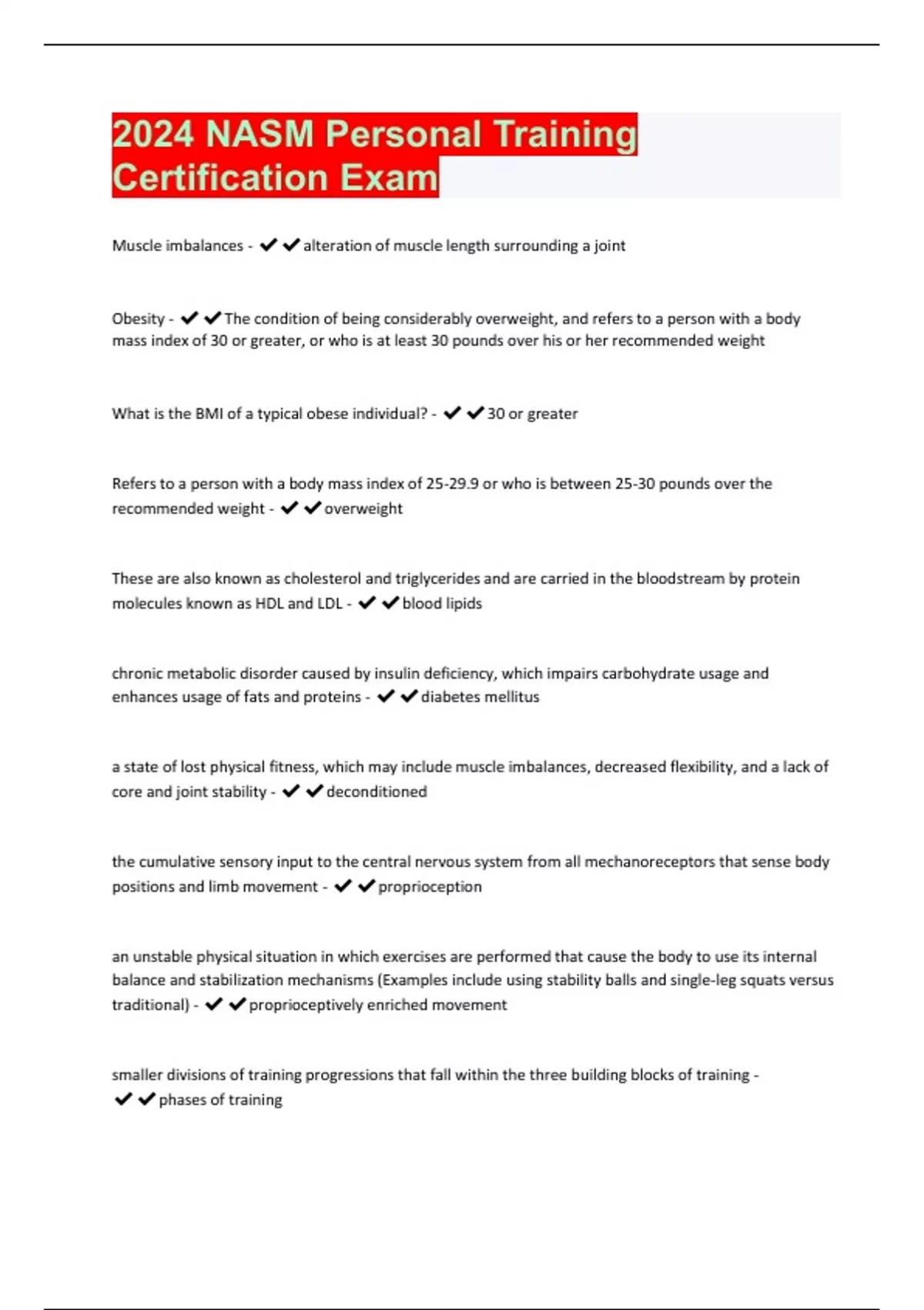 2024 NASM Personal Training Certification Exam | 278 Questions and Answers(A+ Solution guide)