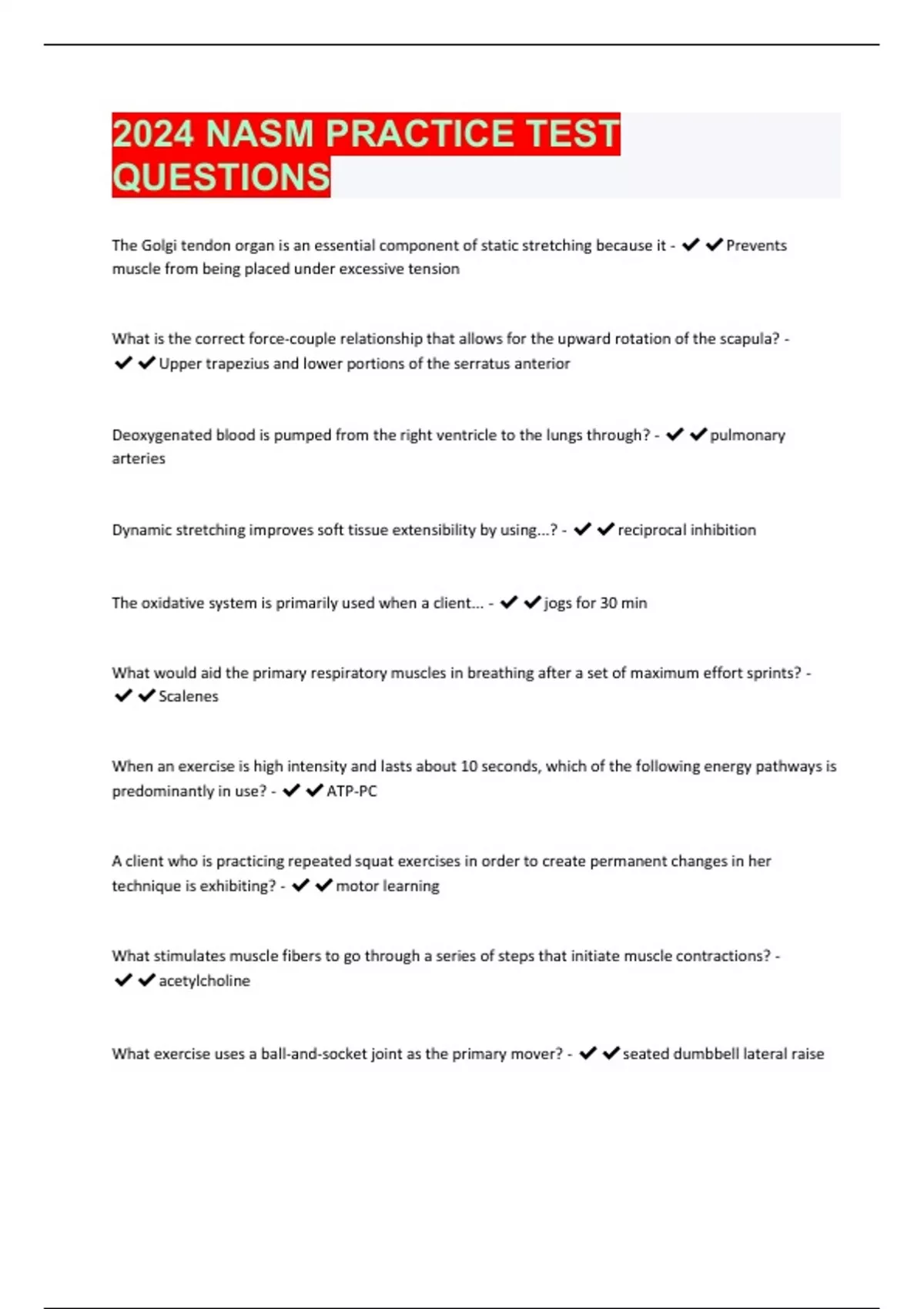 2024 NASM PRACTICE TEST QUESTIONS WITH COMPLETE SOLUTIONS.