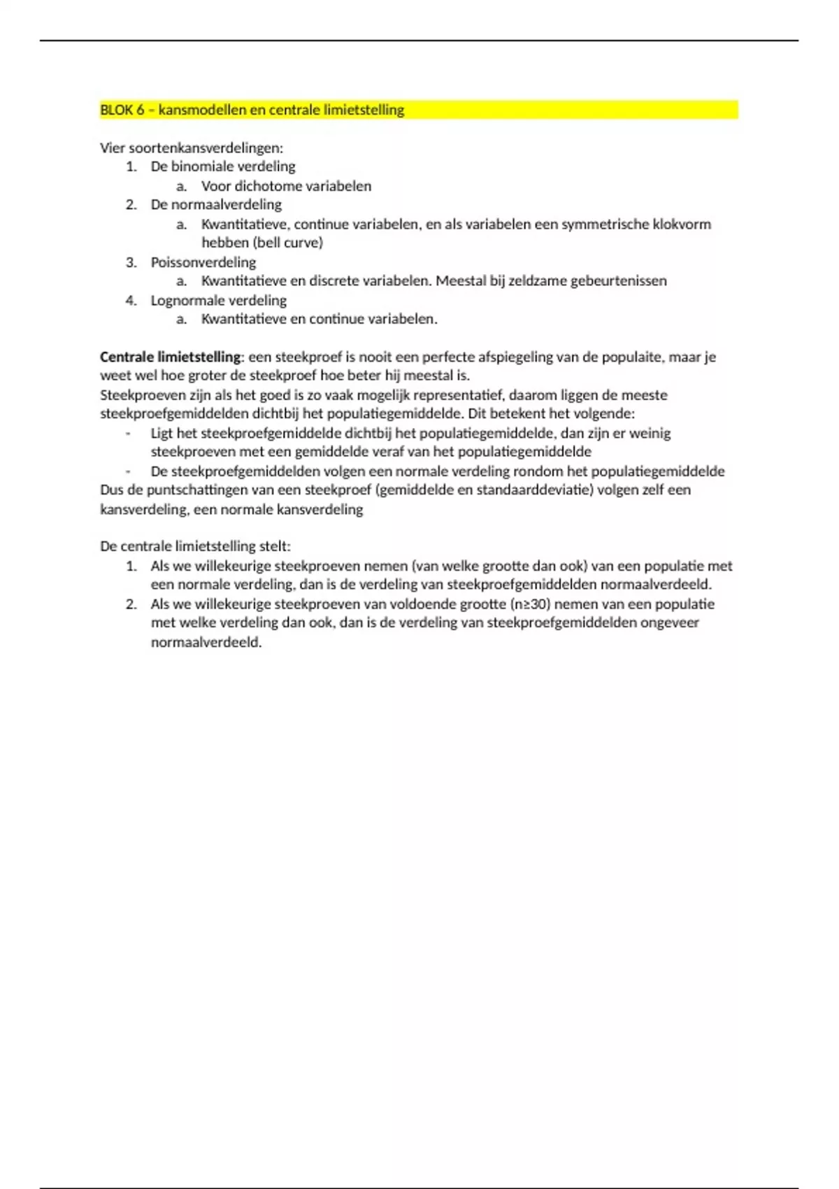 BLOK 6 – kansmodellen en centrale limietstelling