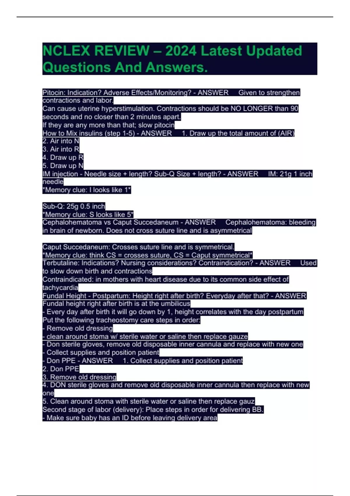 NCLEX REVIEW – 2024 Latest Updated Questions And Answers.