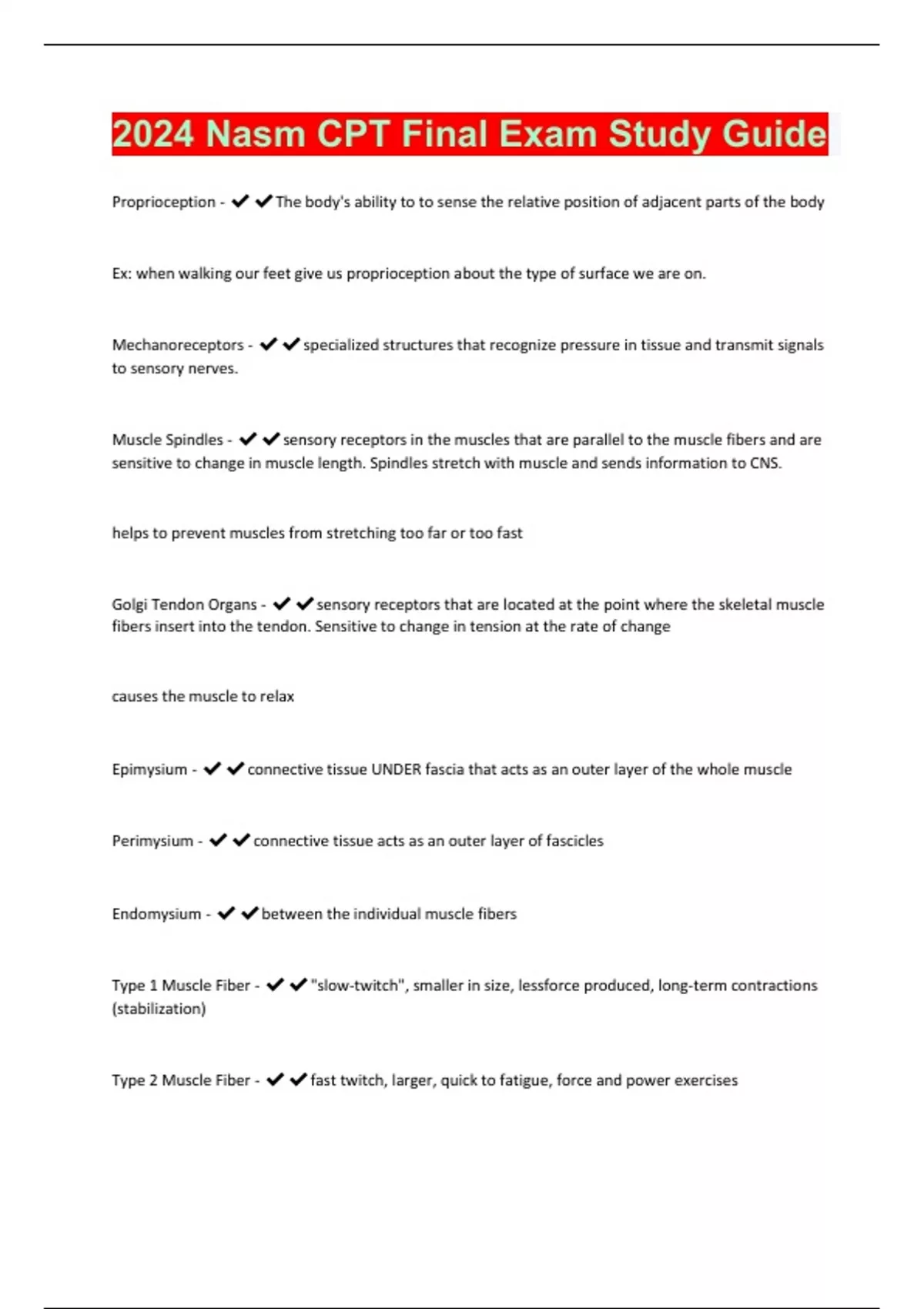 2024 Nasm CPT Final Exam Study Guide Questions and Answers(A+ Solution guide)