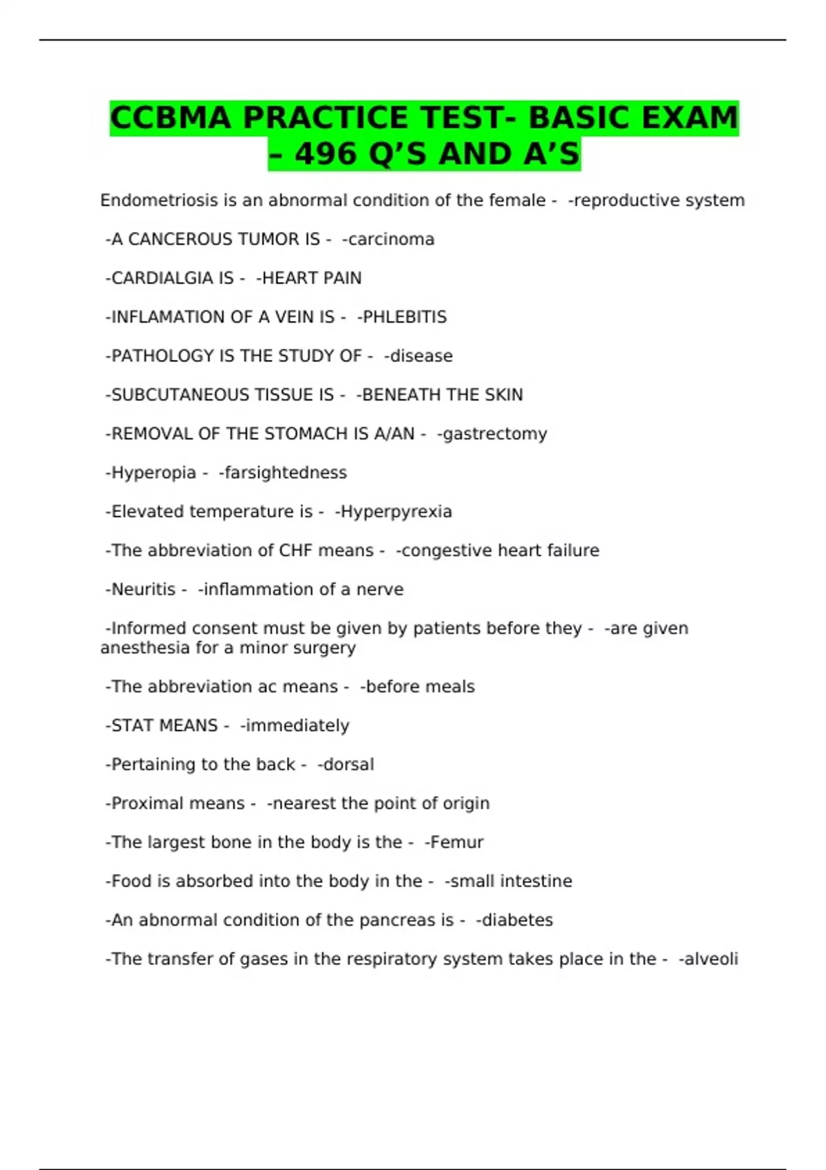 CCBMA PRACTICE TEST- BASIC EXAM – 496 Q’S AND A’S