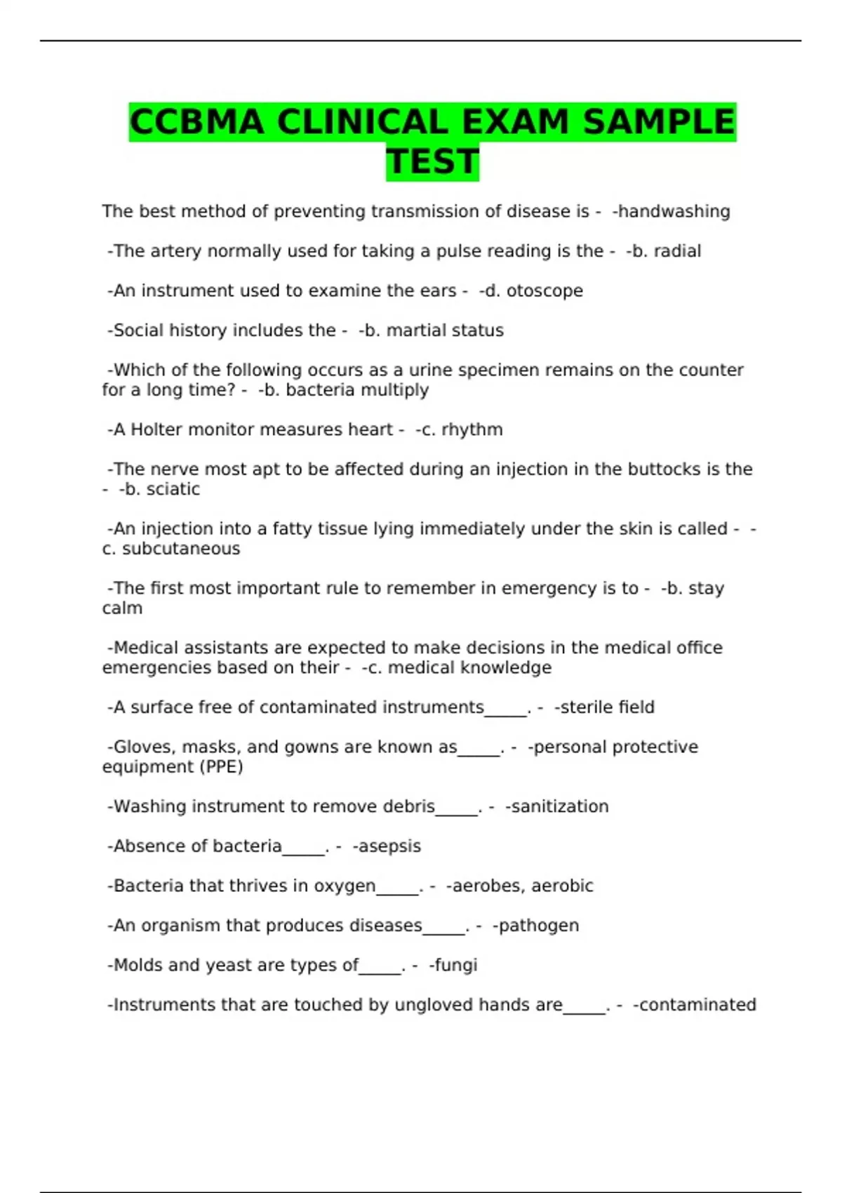 CCBMA CLINICAL EXAM SAMPLE TEST
