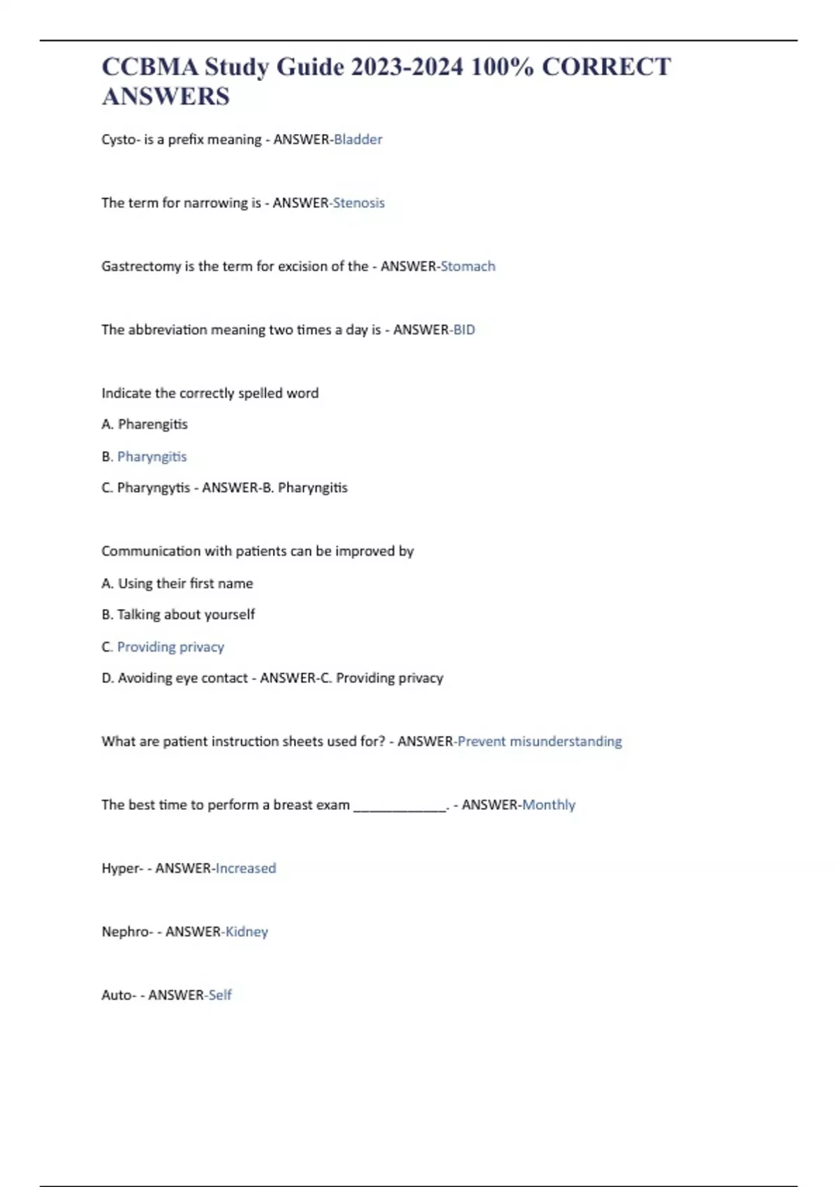 CCBMA Study Guide % CORRECT ANSWERS CCBMA Study Guide % CORRECT ANSWERS CCBMA Study Guide % CORRECT ANSWERS CCBMA Study Guide % CORRECT ANSWERS CCBMA Study Guide % CORRECT ANSWERS