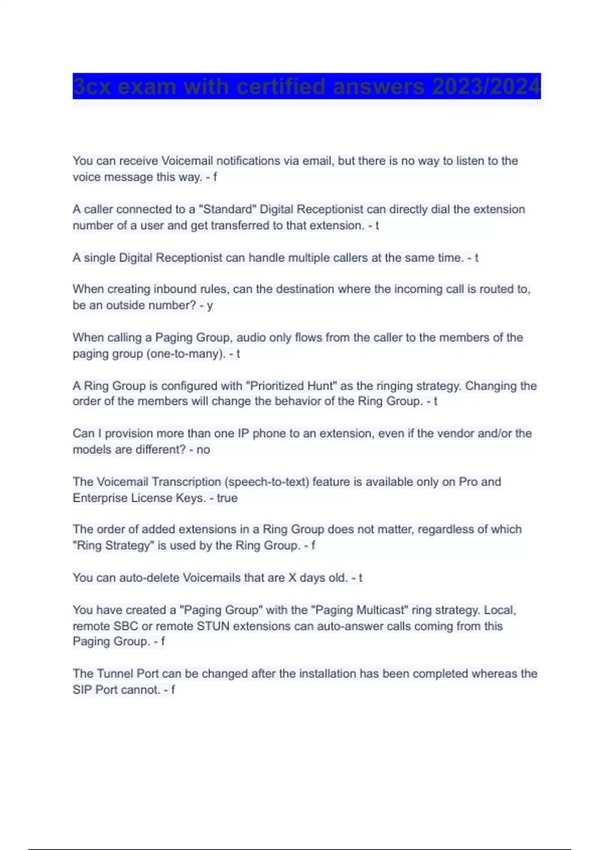 3cx exam with certified answers 2023/2024