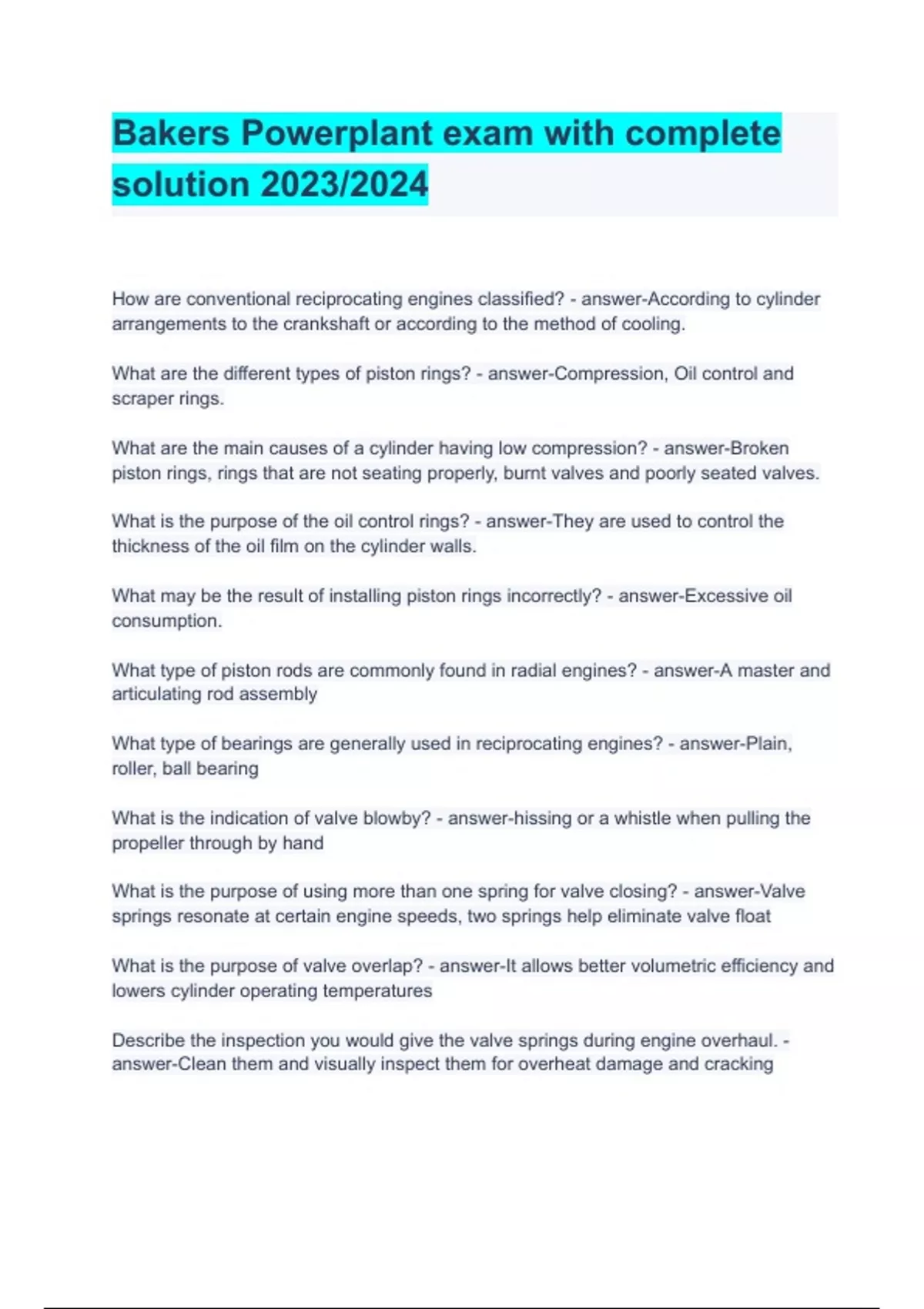 Bakers Powerplant exam with complete solution 2023/2024