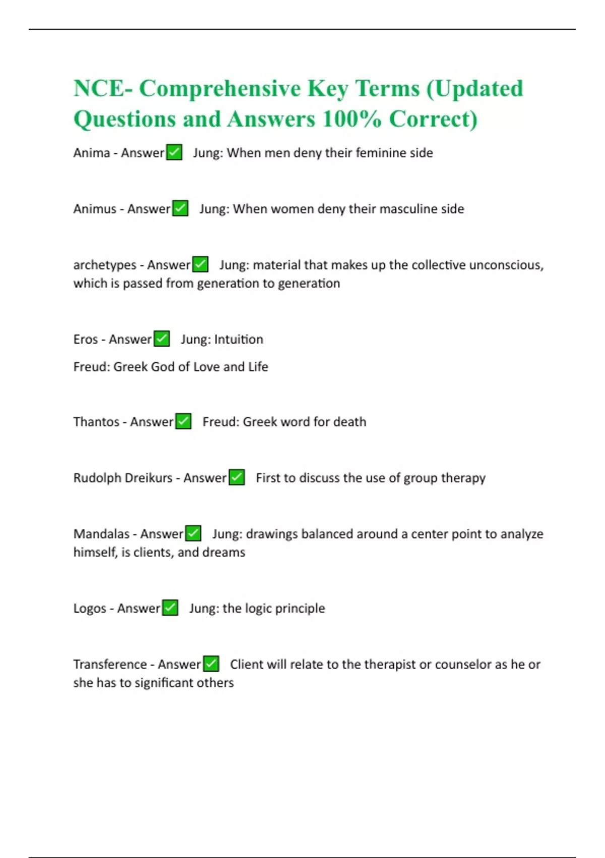 NCE- Comprehensive Key Terms (Updated Questions and Answers 100% Correct)