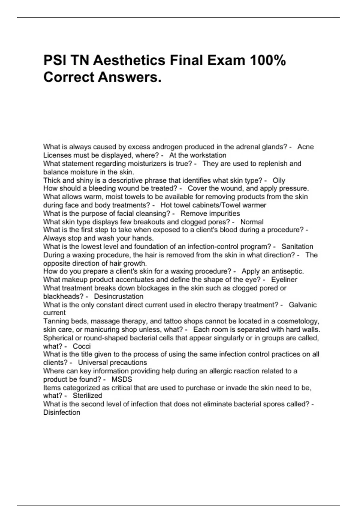 PSI TN Aesthetics Final Exam 100% Correct Answers.