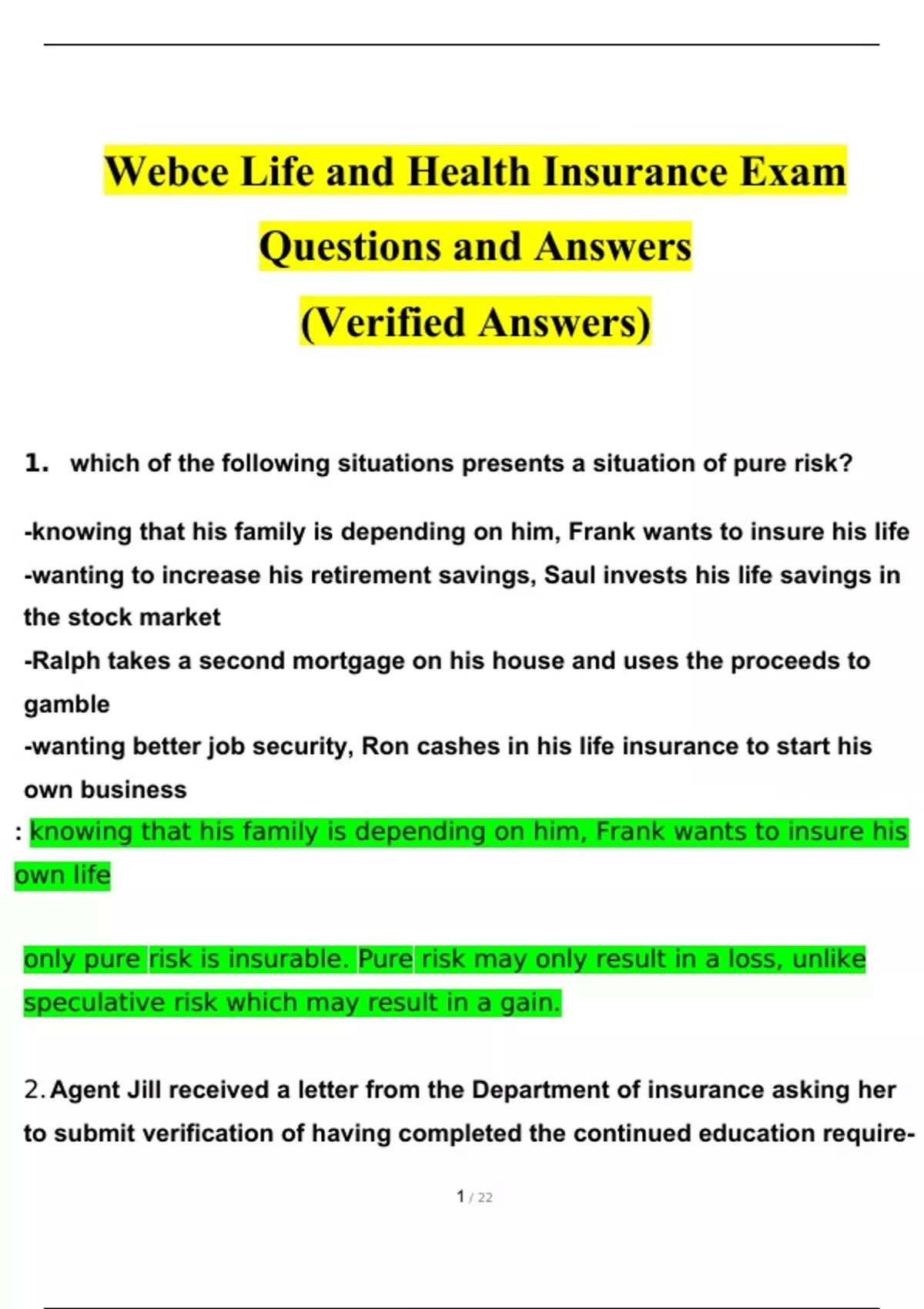WebCE Life and Health Insurance Exam Latest Questions and Answers (2024 / 2025) (Verified by Expert) WebCE Life and Health Insurance Exam Latest Questions and Answers (2024 / 2025) (Verified by Expert) WebCE Life and Health Insurance Exam Latest Questions and Answers (2024 / 2025) (Verified by Expert)