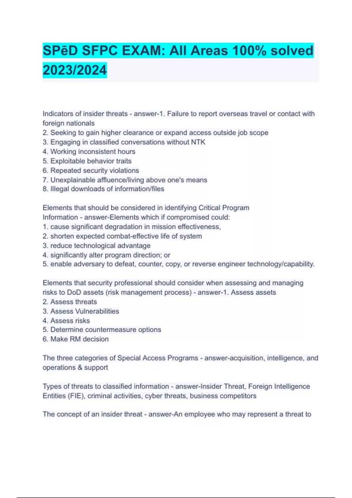 SPēD SFPC EXAM: All Areas 100% solved 2023/2024