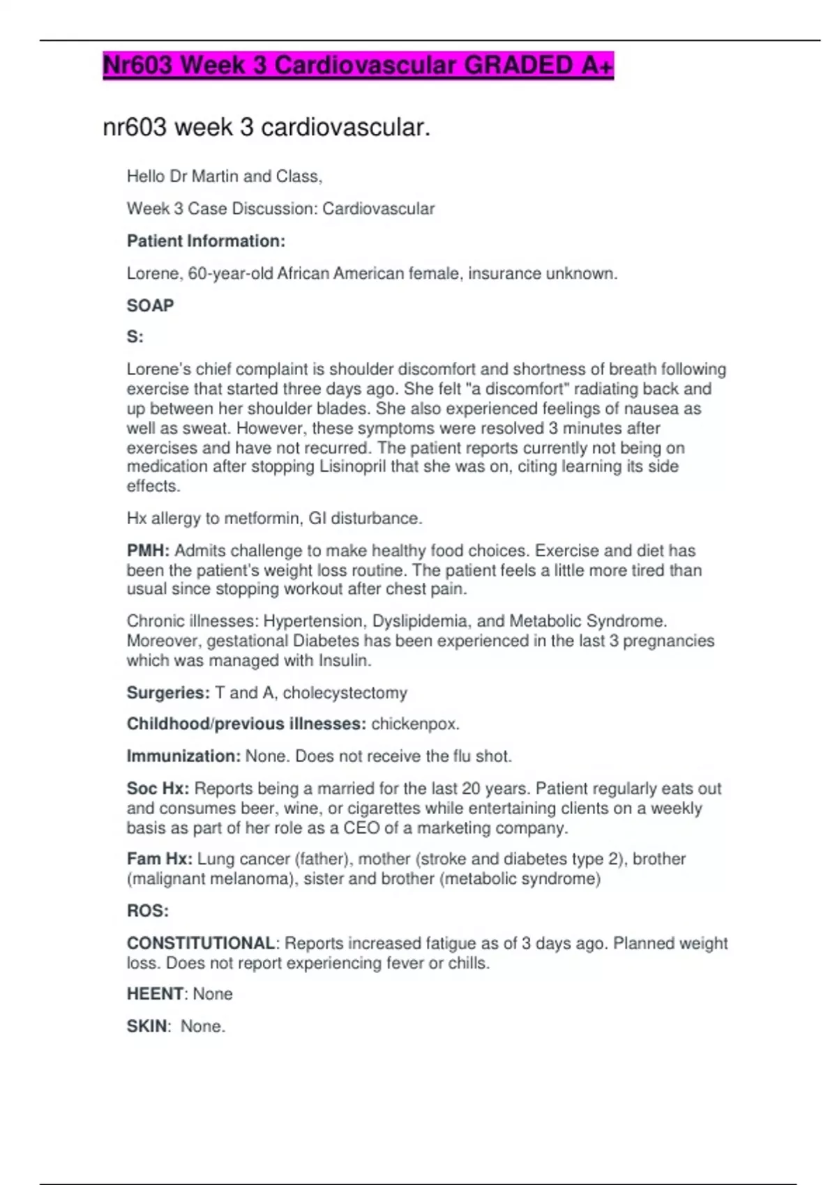 Nr603 Week 3 Cardiovascular GRADED A+