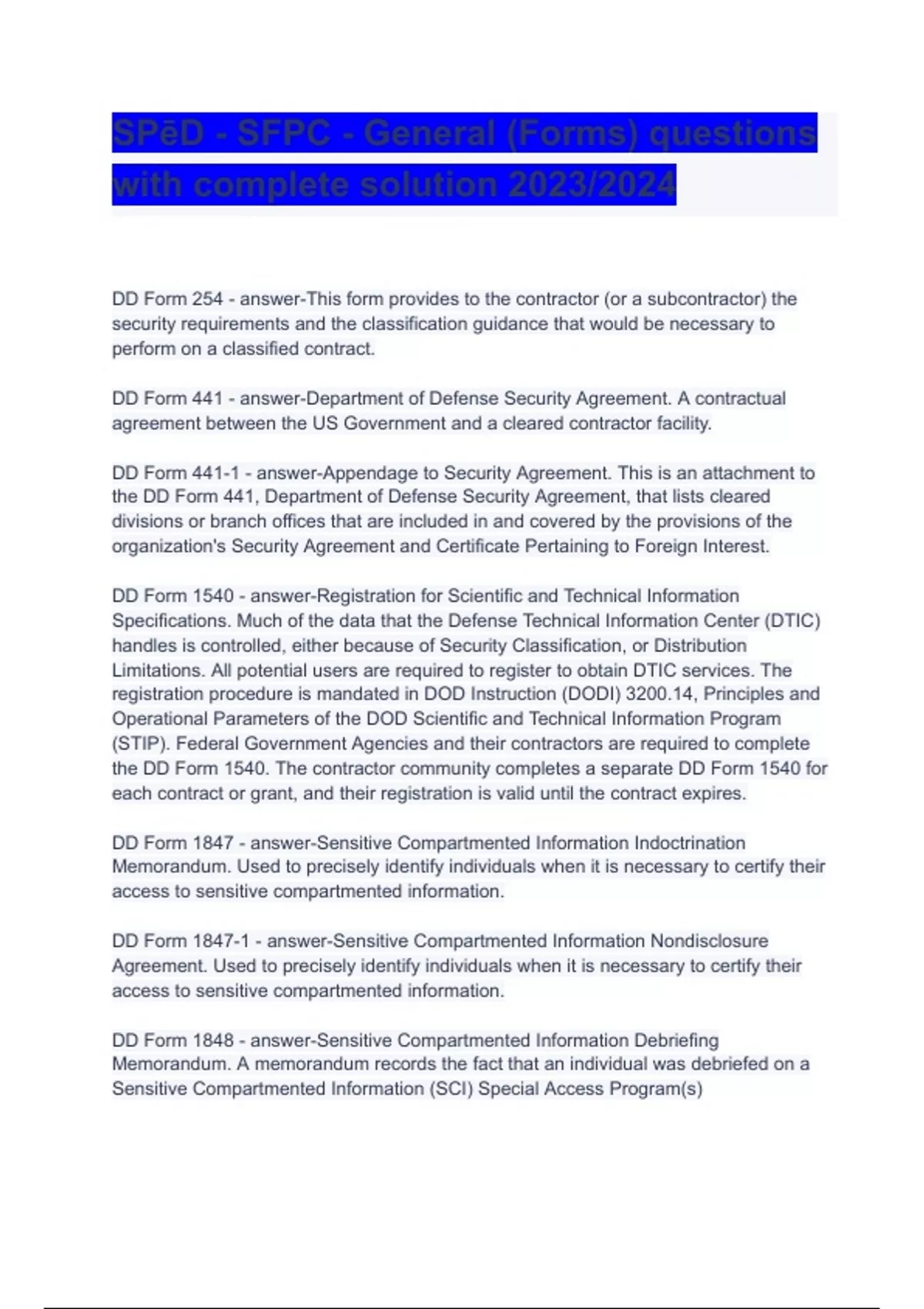 SPēD - SFPC - General (Forms) questions with complete solution 2023/2024