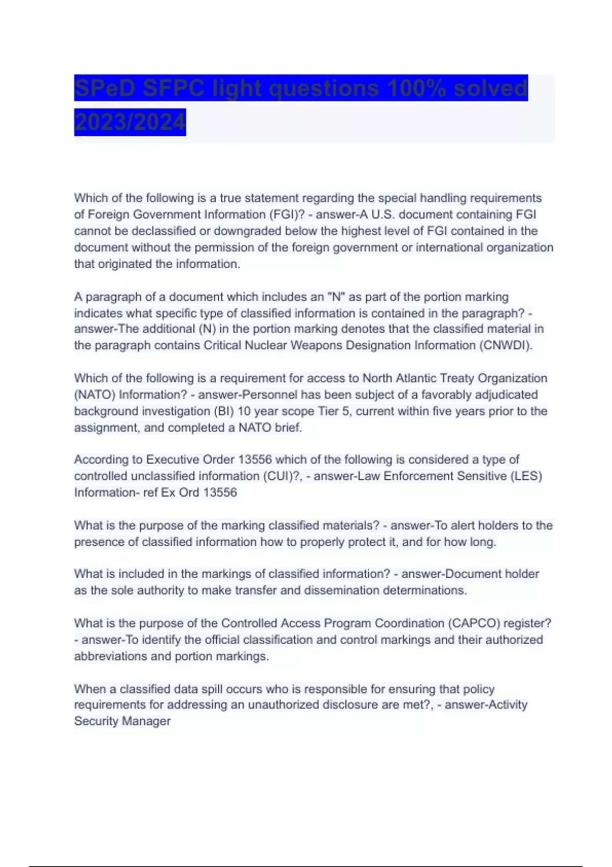 - SPeD SFPC light quetions 100% solved 2023/2024