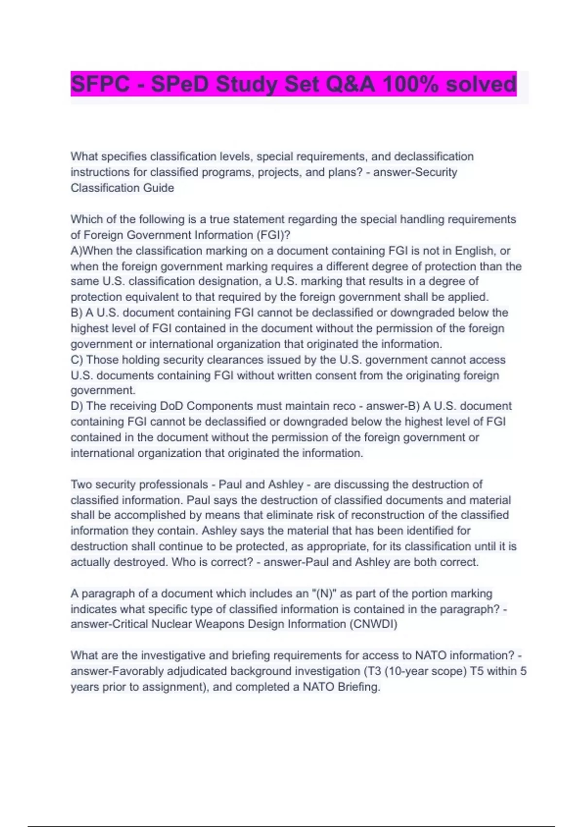- SFPC - SPeD Study Set Q&A 100% solved
