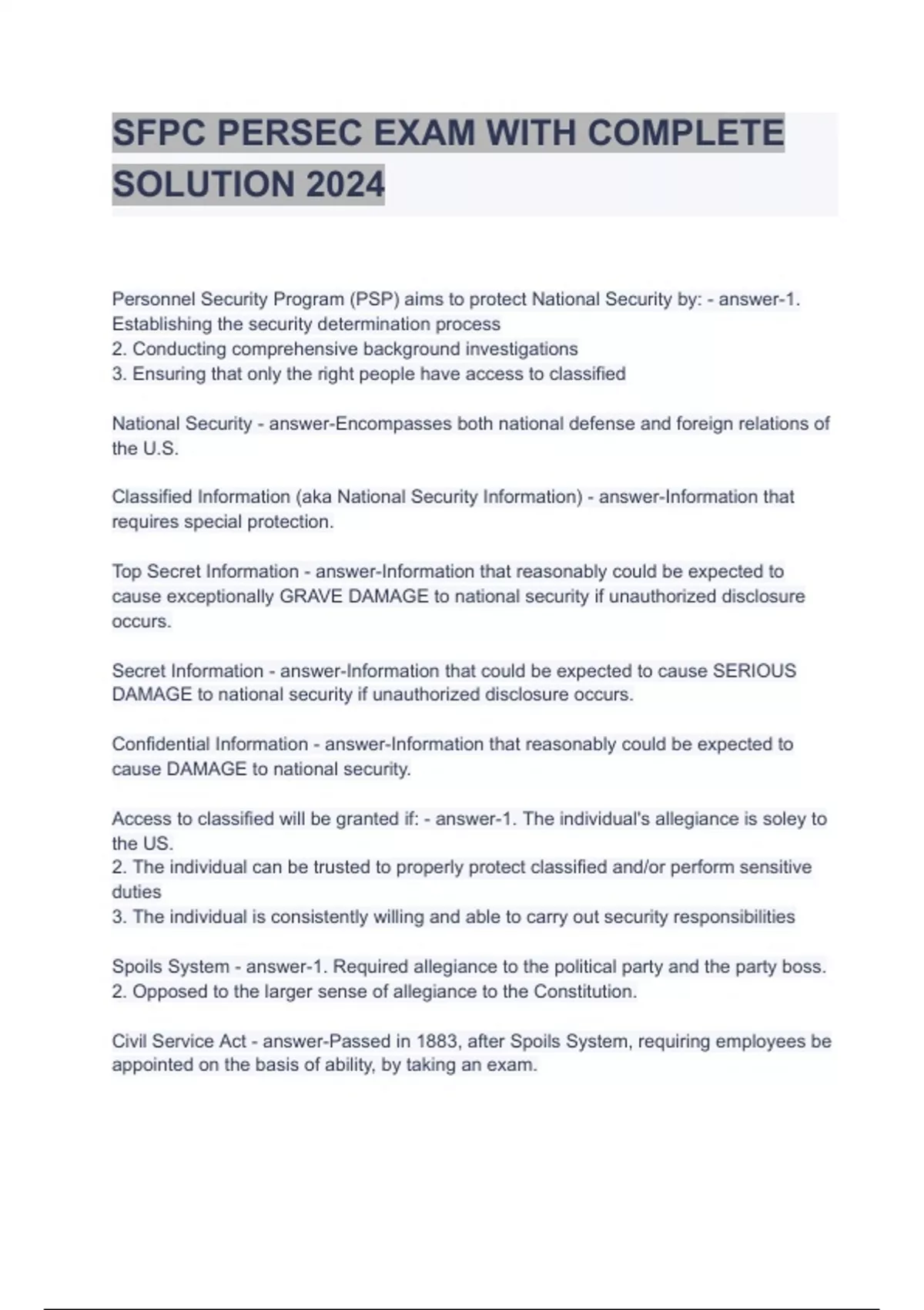 - SFPC PERSEC EXM WITH COMPLETE SOLUTION 2024