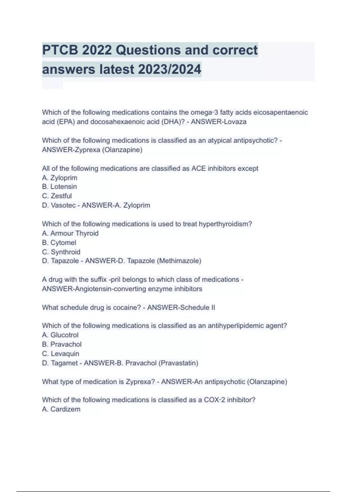 PTCB 2022 Questions and correct answers latest 2023/2024