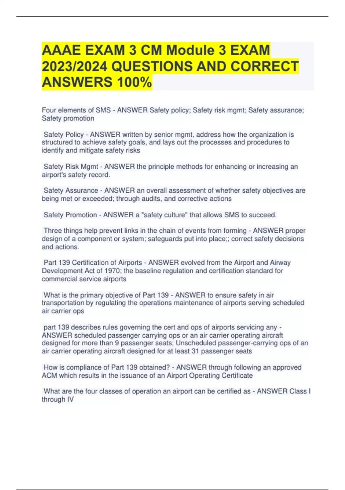 Part 139 Certification of Airports - ANSWER evolved from the Airport and Airway