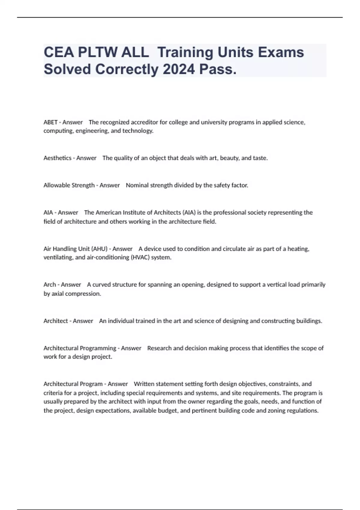 CEA PLTW ALL Training Units Exams Solved Correctly 2024 Pass.