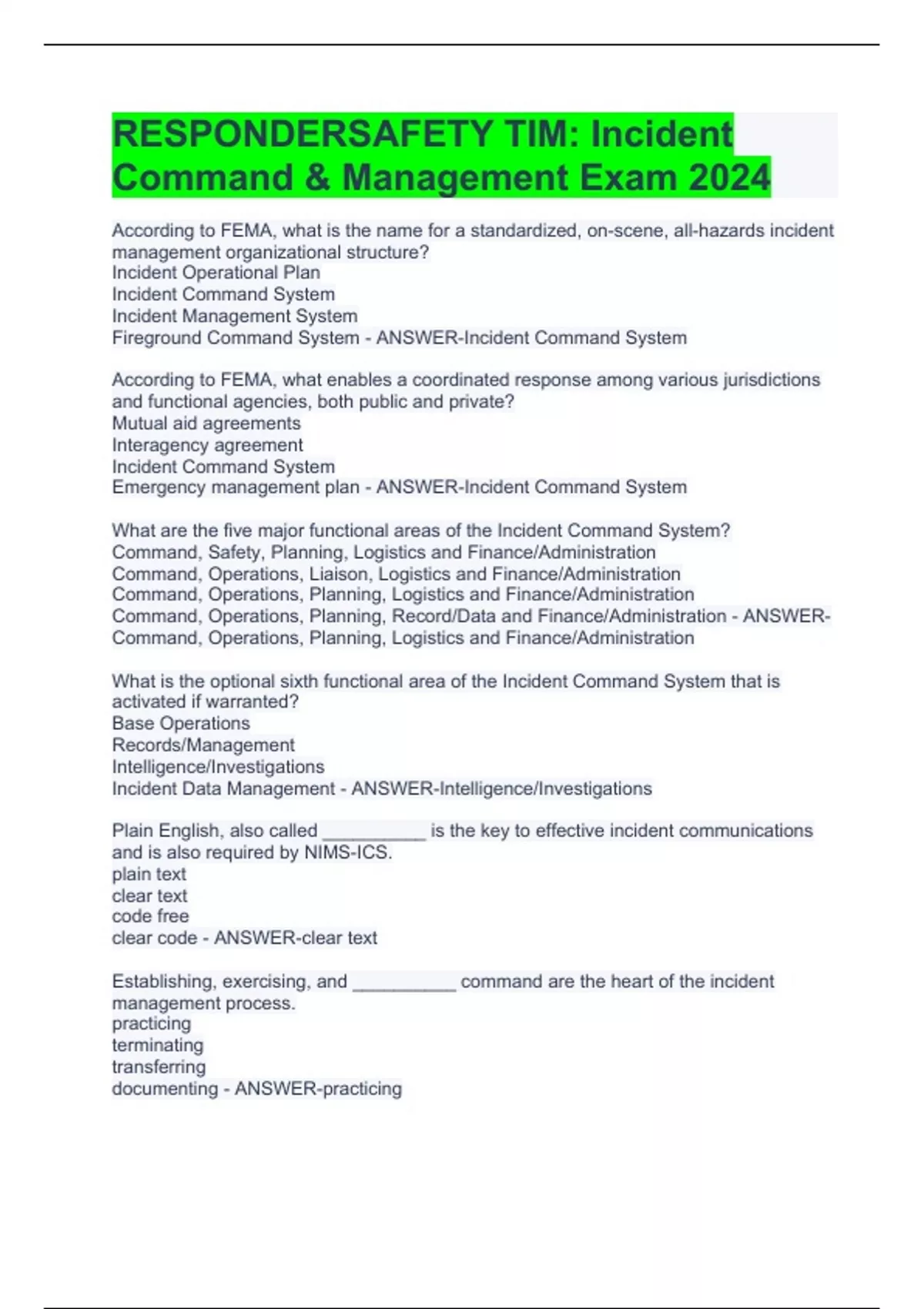 RESPONDERSAFETY TIM: Incident Command & Management Exam 2024
