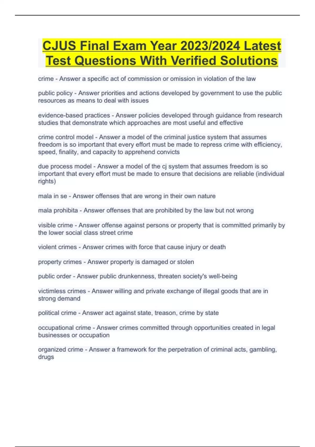 CJUS Final Exam Year 2023/2024 Latest Test Questions With Verified Solutions