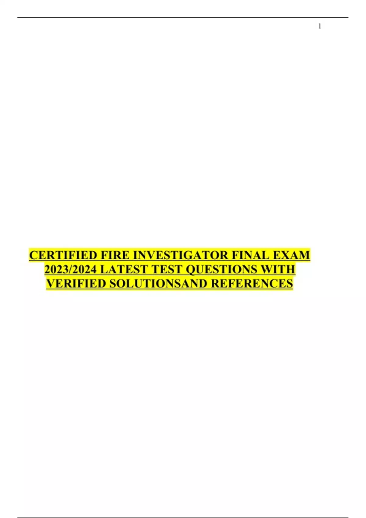 CERTIFIED FIRE INVESTIGATOR FINAL EXAM 2023/2024 LATEST TEST QUESTIONS WITH VERIFIED SOLUTIONSAND REFERENCES
