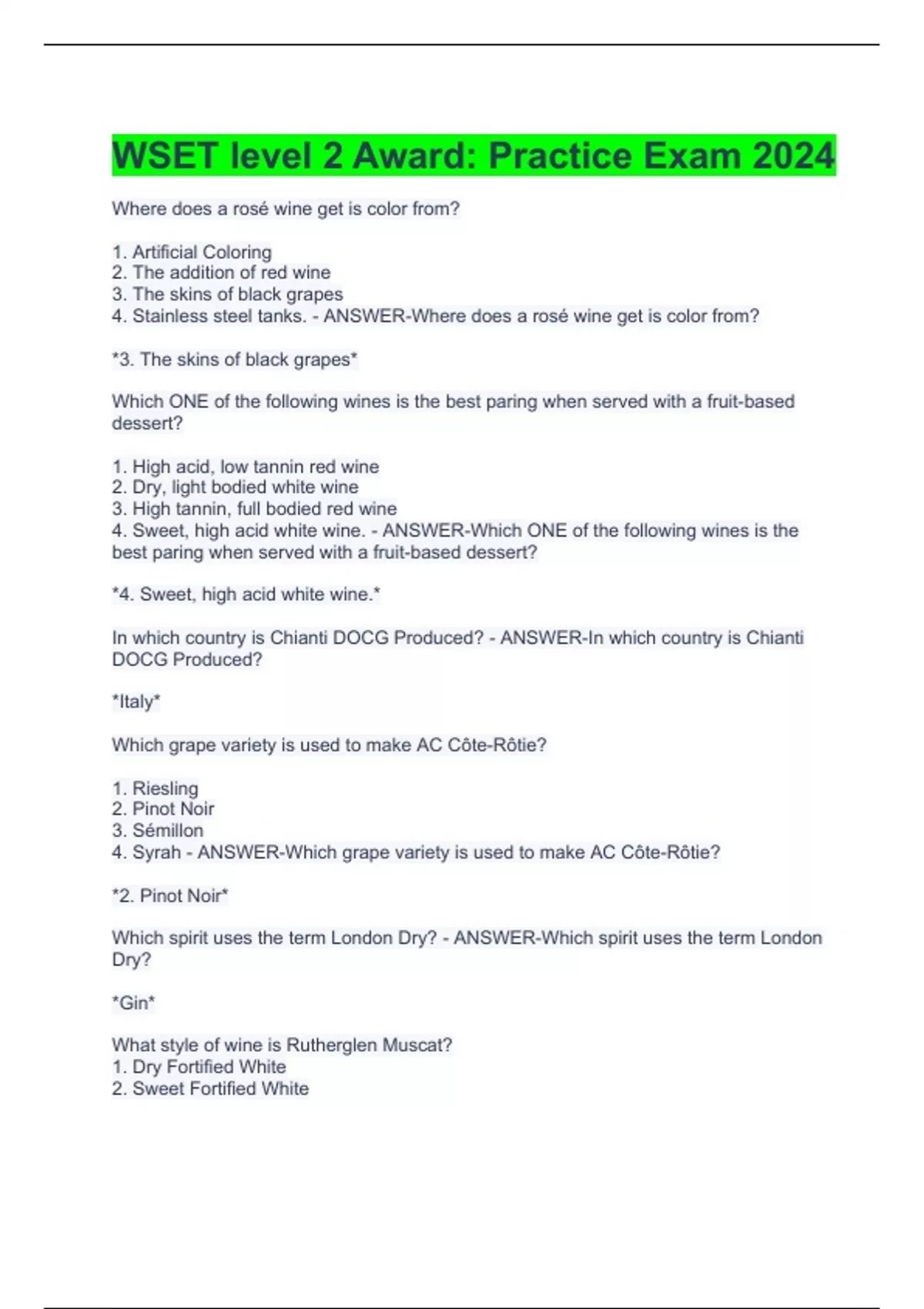 WSET EXAMS PACKAGE DEAL -SOLVED