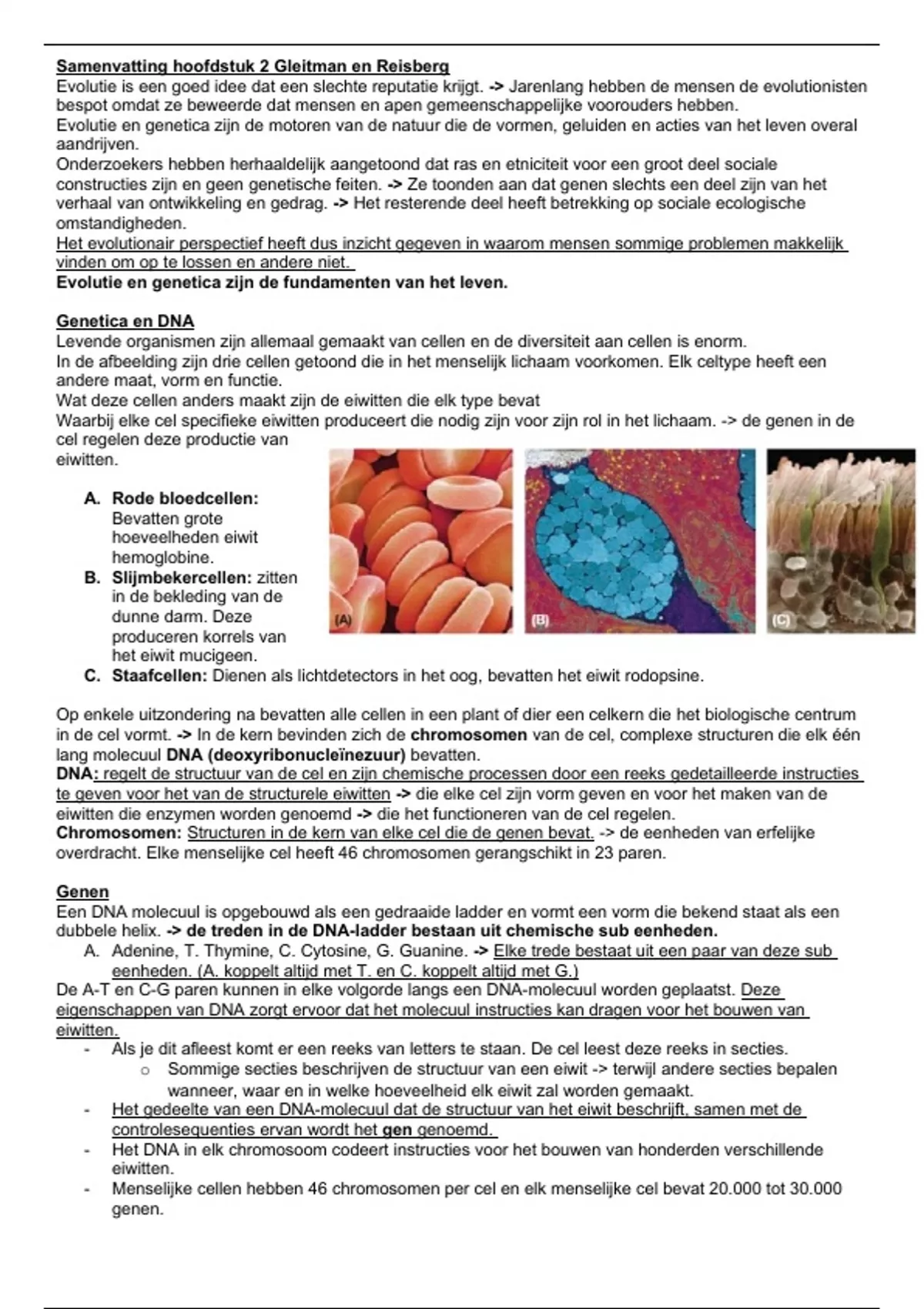 Chromosomen: Structuren in de kern van elke cel die de genen bevat. -> de eenheden van erfelijke