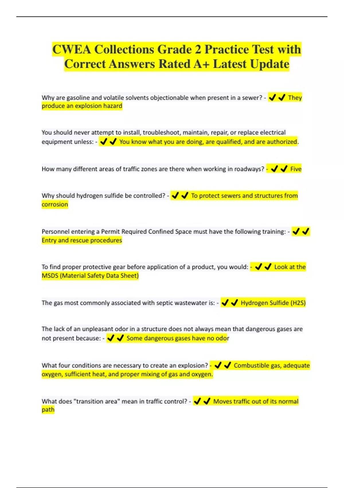 CWEA Collections Grade 2 Practice Test with Correct Answers Rated A+ Latest Update