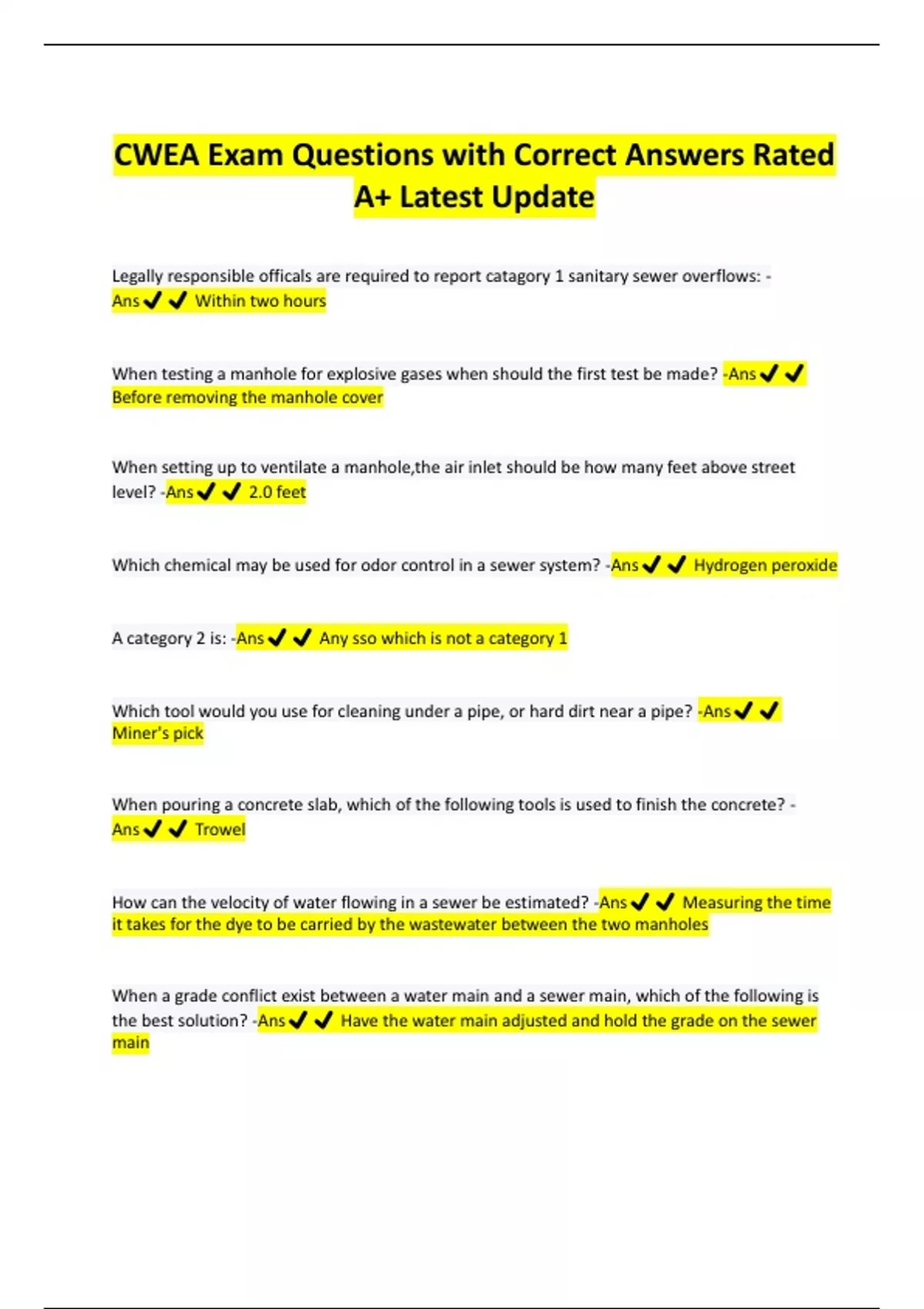 CWEA Exam Questions with Correct Answers Rated A+ Latest Update