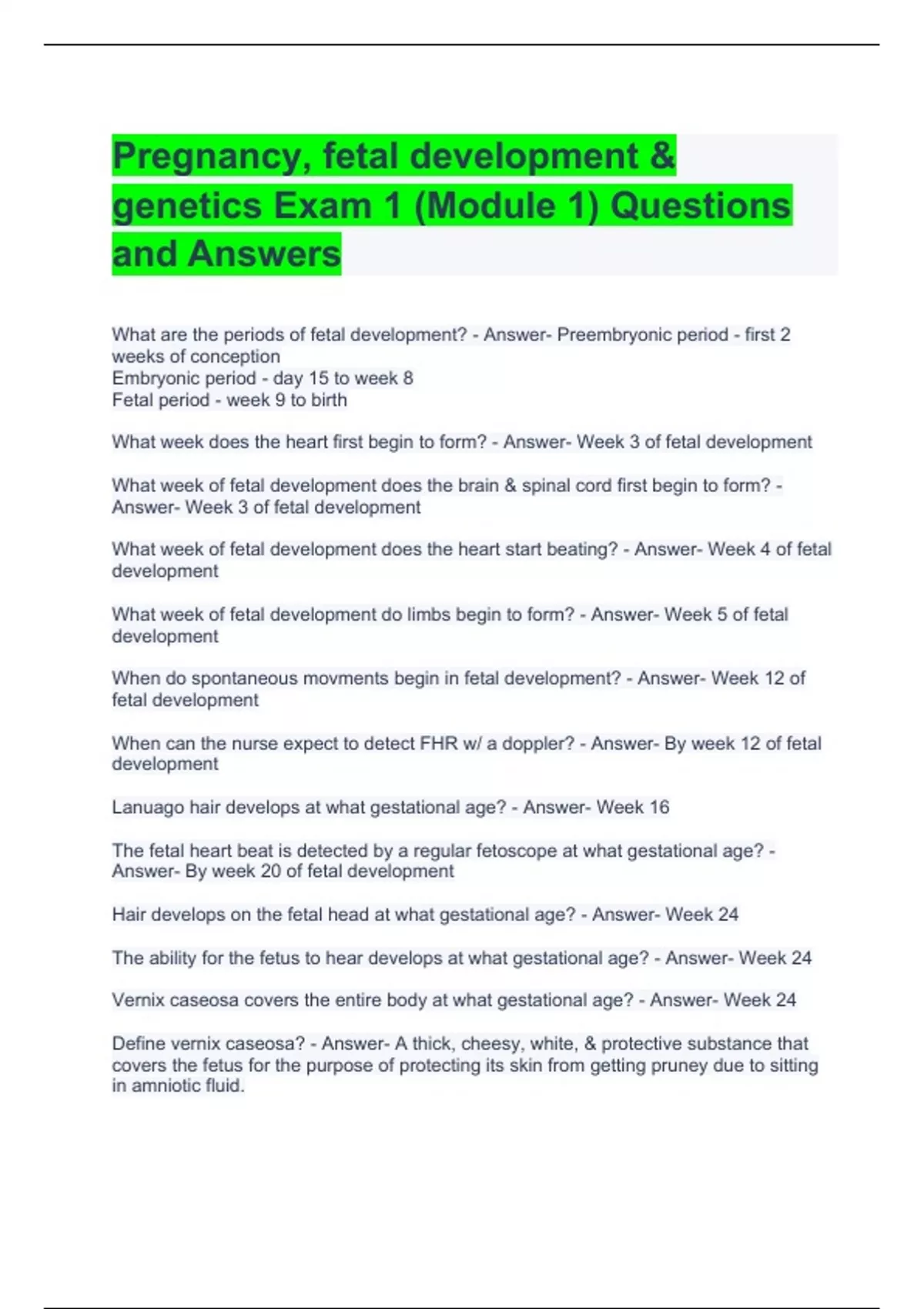 Pregnancy, fetal development & genetics Exam 1 (Module 1) Questions and Answers