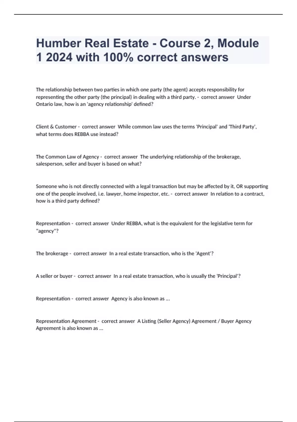 Humber Real Estate - Course 2, Module 1 2024 with 100% correct answers
