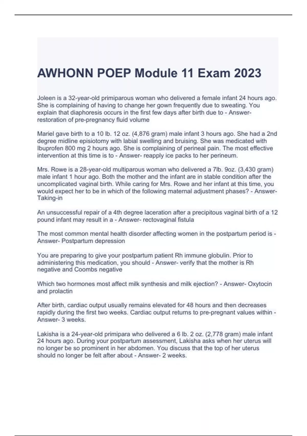 AWHONN POEP Module 11 Exam 2023 Questions and Answers