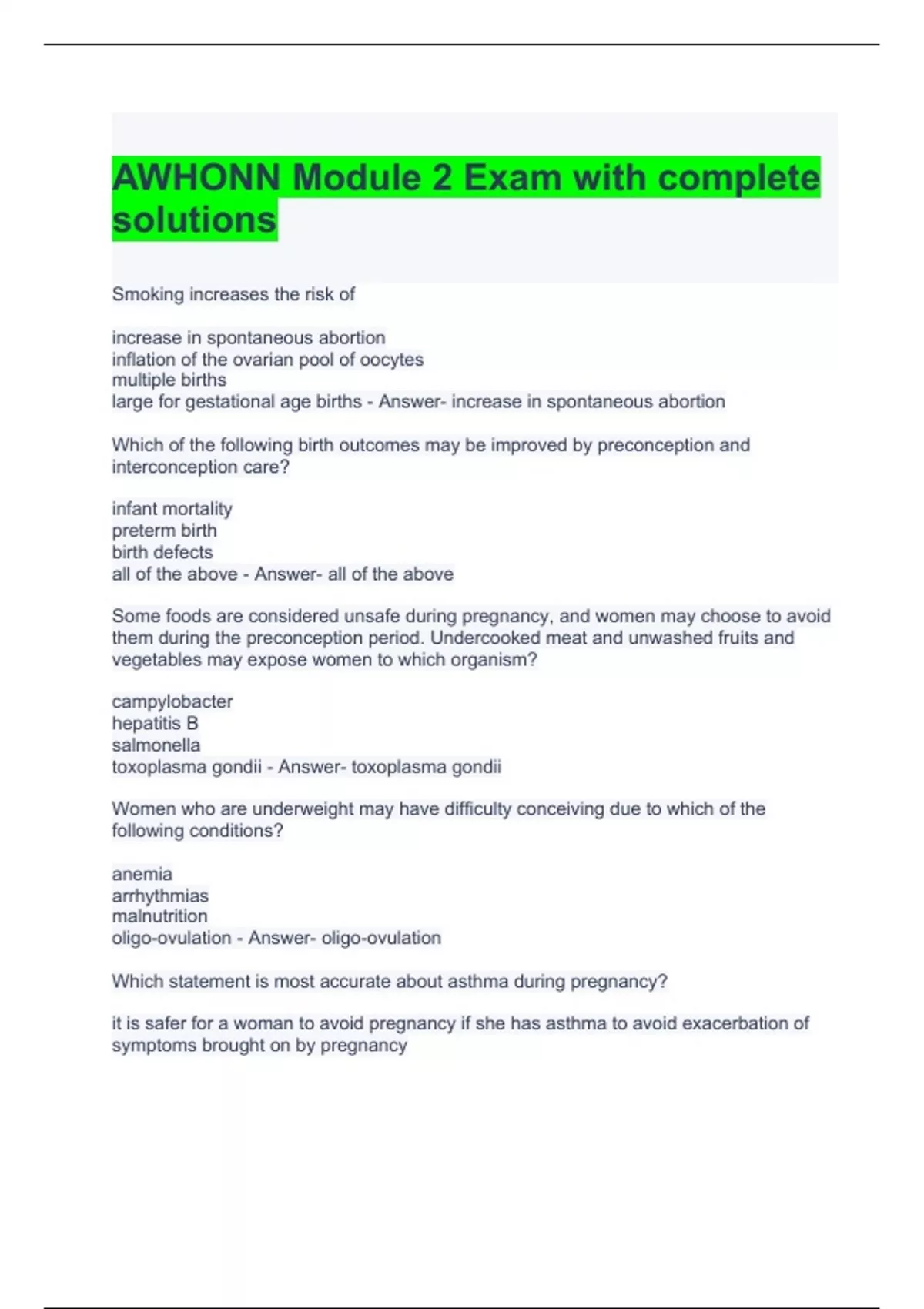 awhonn module 2 exam with complete solutions