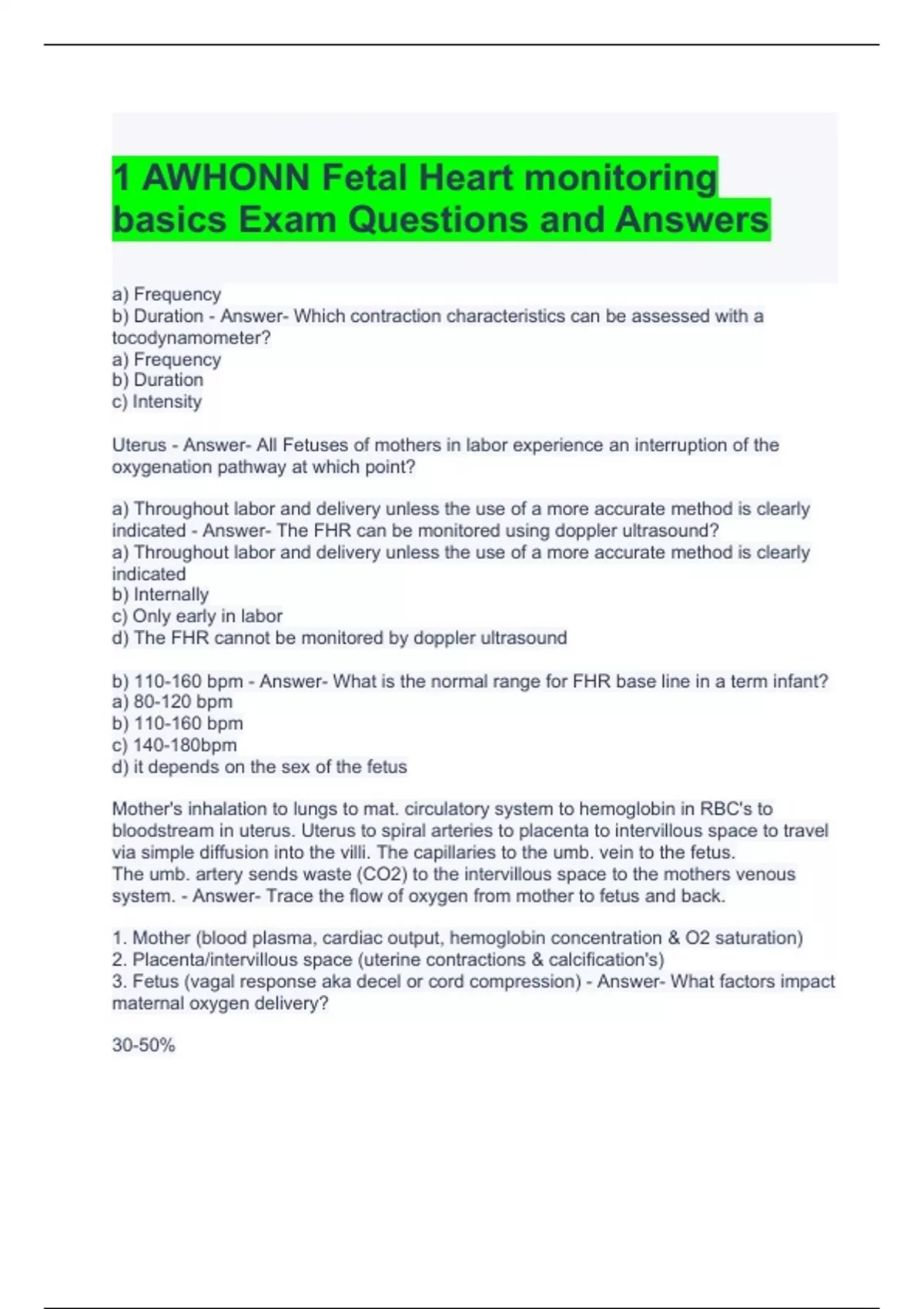 1 AWHONN Fetal Heart monitoring basics Exam Questions and Answers